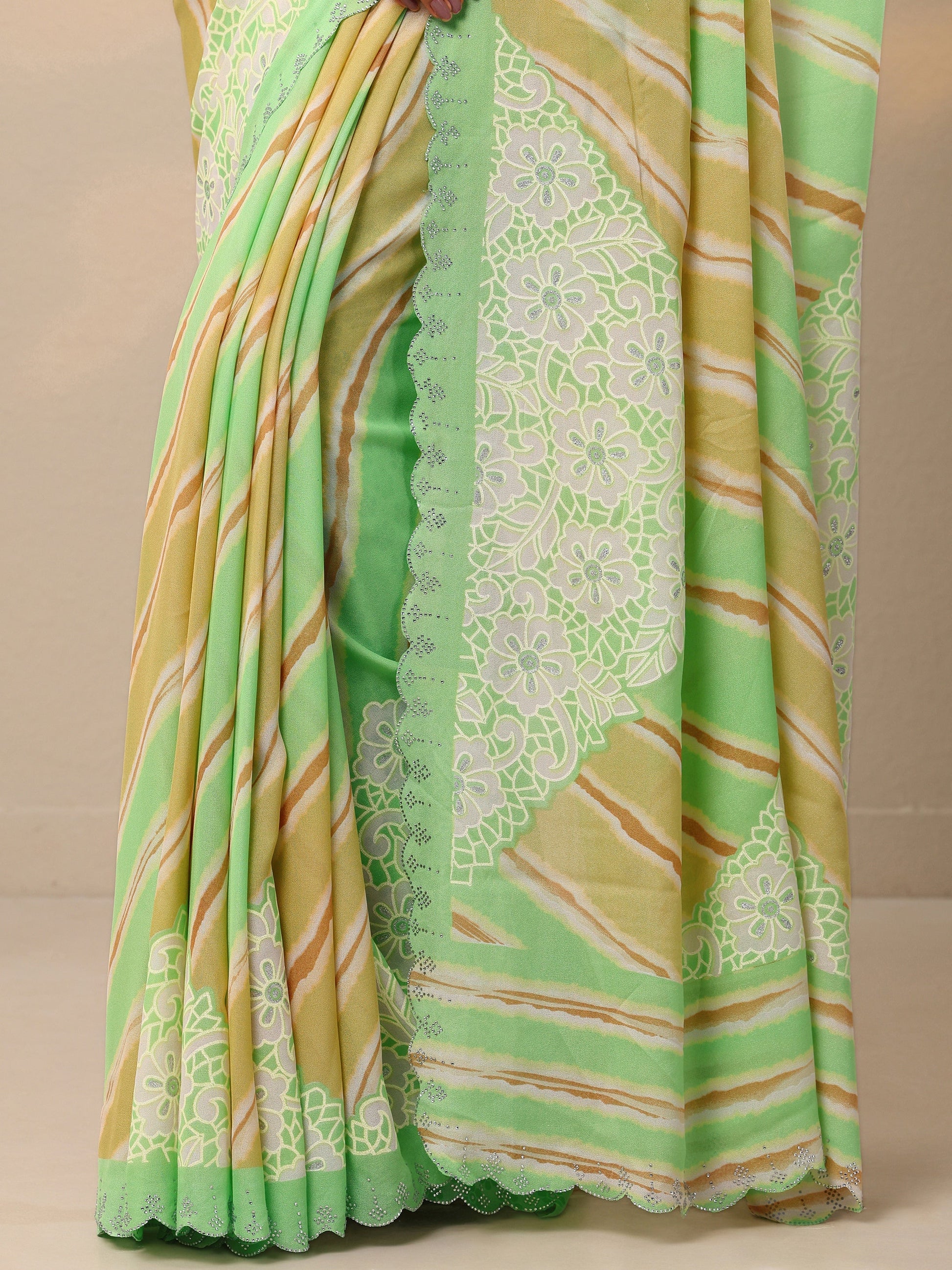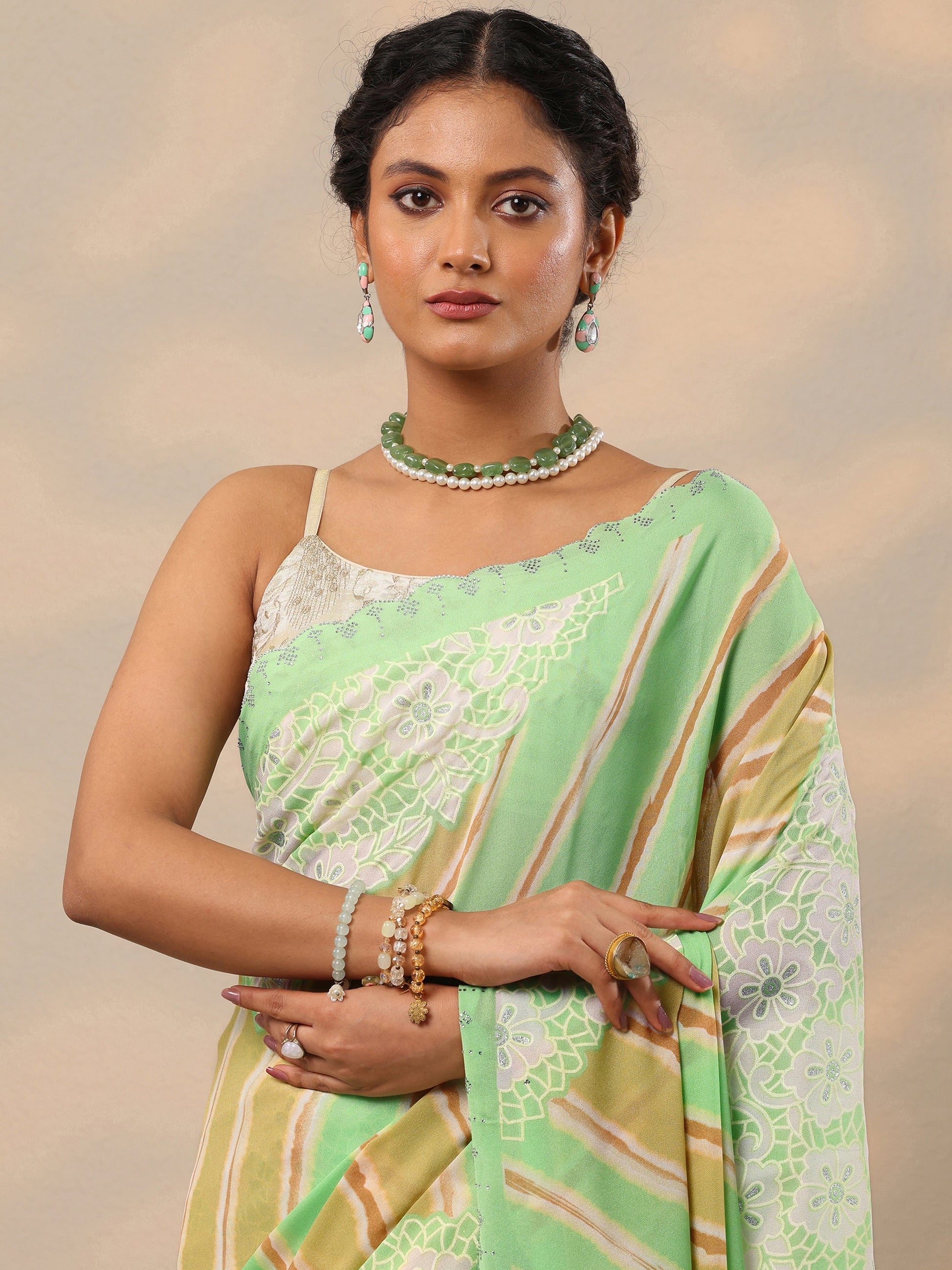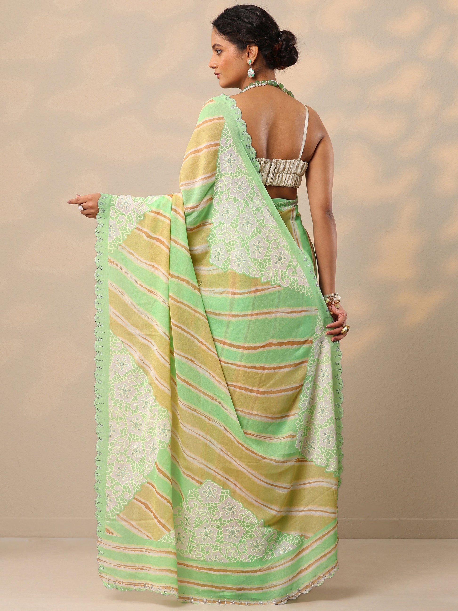 Green Leheriya Printed Georgette Saree With Unstitched Blouse Piece
