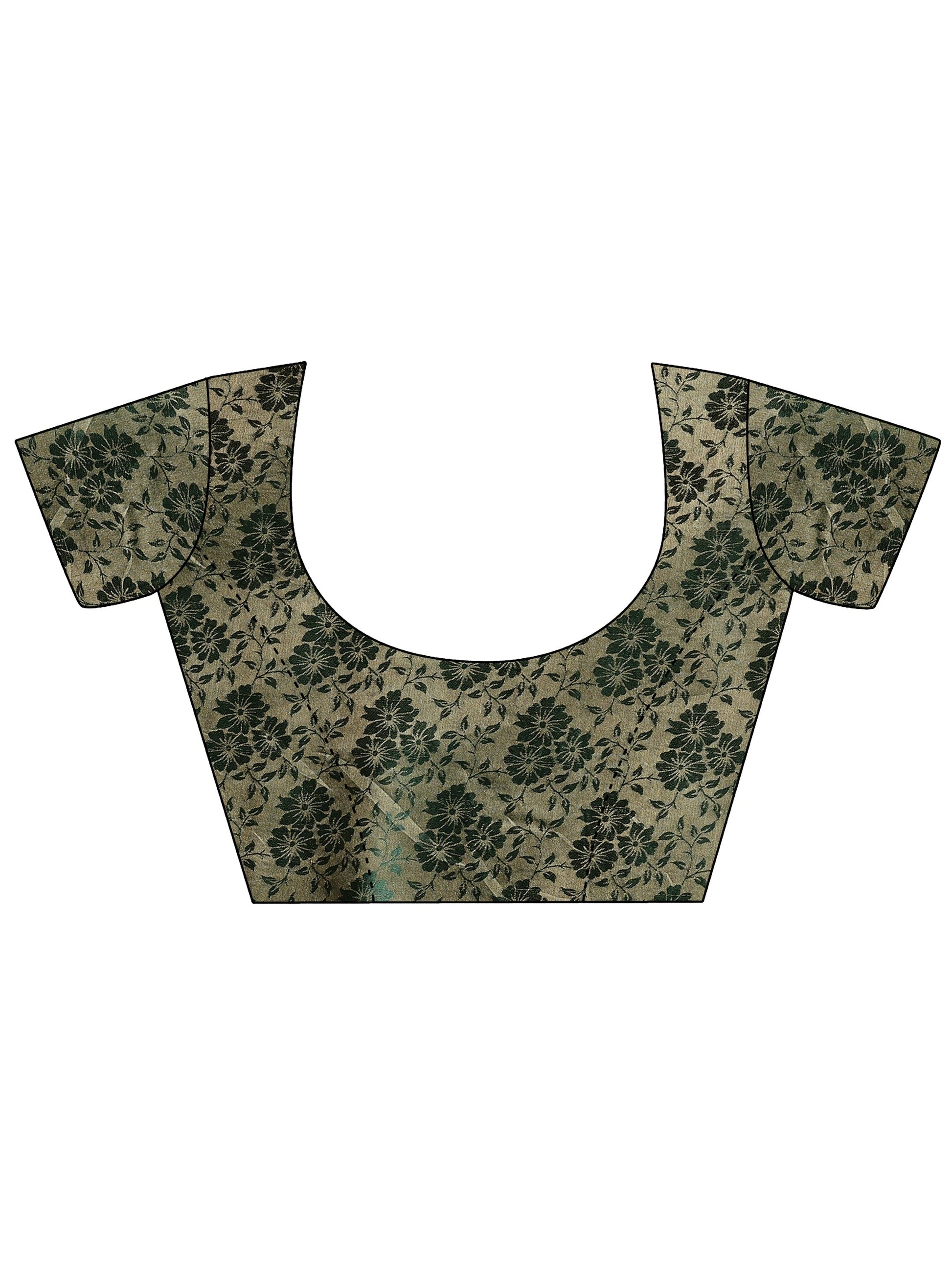 Green Printed Chiffon Saree With Unstitched Blouse Piece