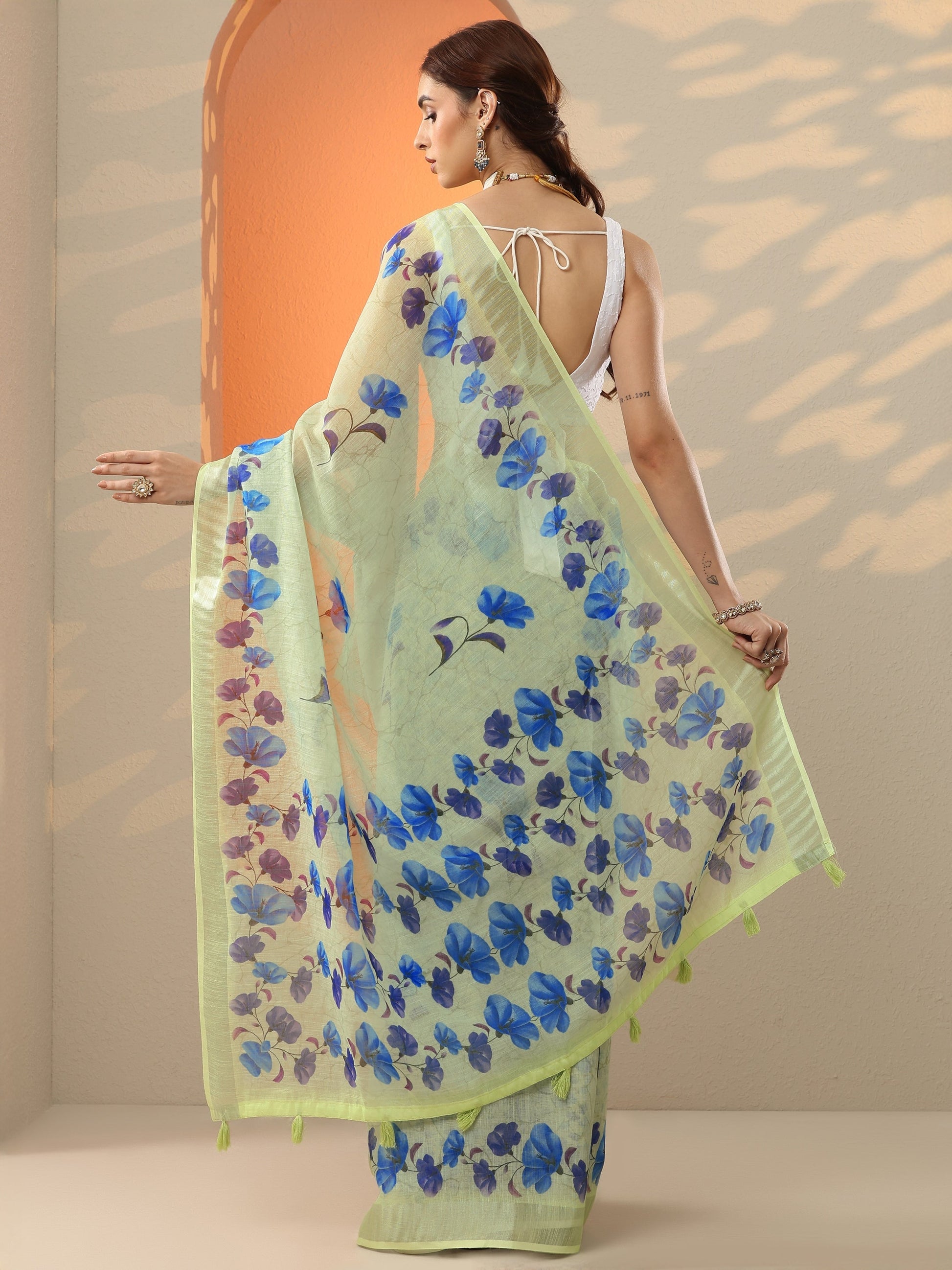 Our Sea Green Printed Cotton Blend Saree Features Captivating Floral Print. Complemented With An Unstitched Blouse Piece. This Charming Saree Is Perfect For Festive Wear.
