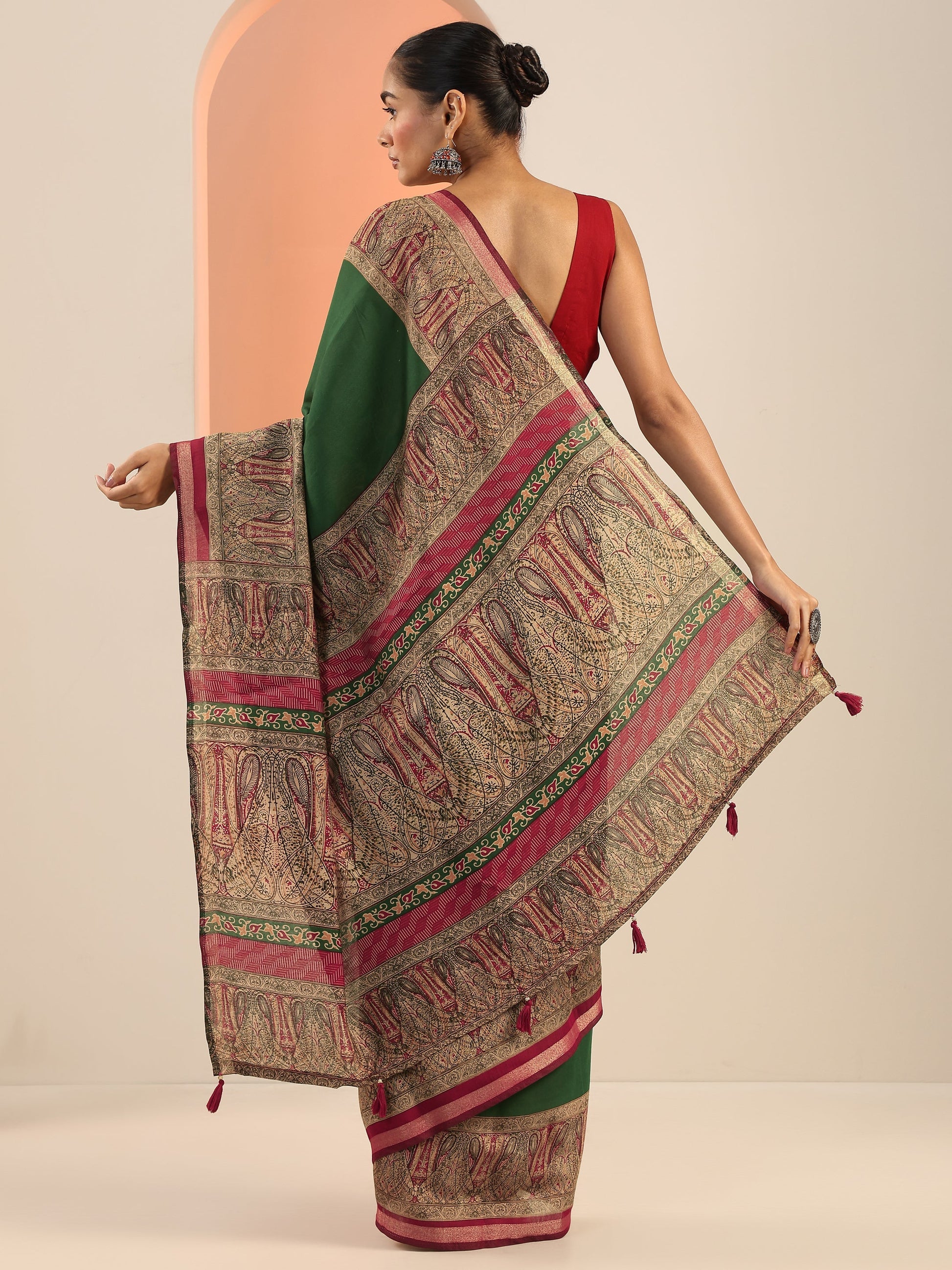Our Green Printed Cotton Blend Saree Features Captivating Paisley Printed Design. Complemented With An Unstitched Blouse Piece. This Charming Saree Is Perfect For Festive Wear