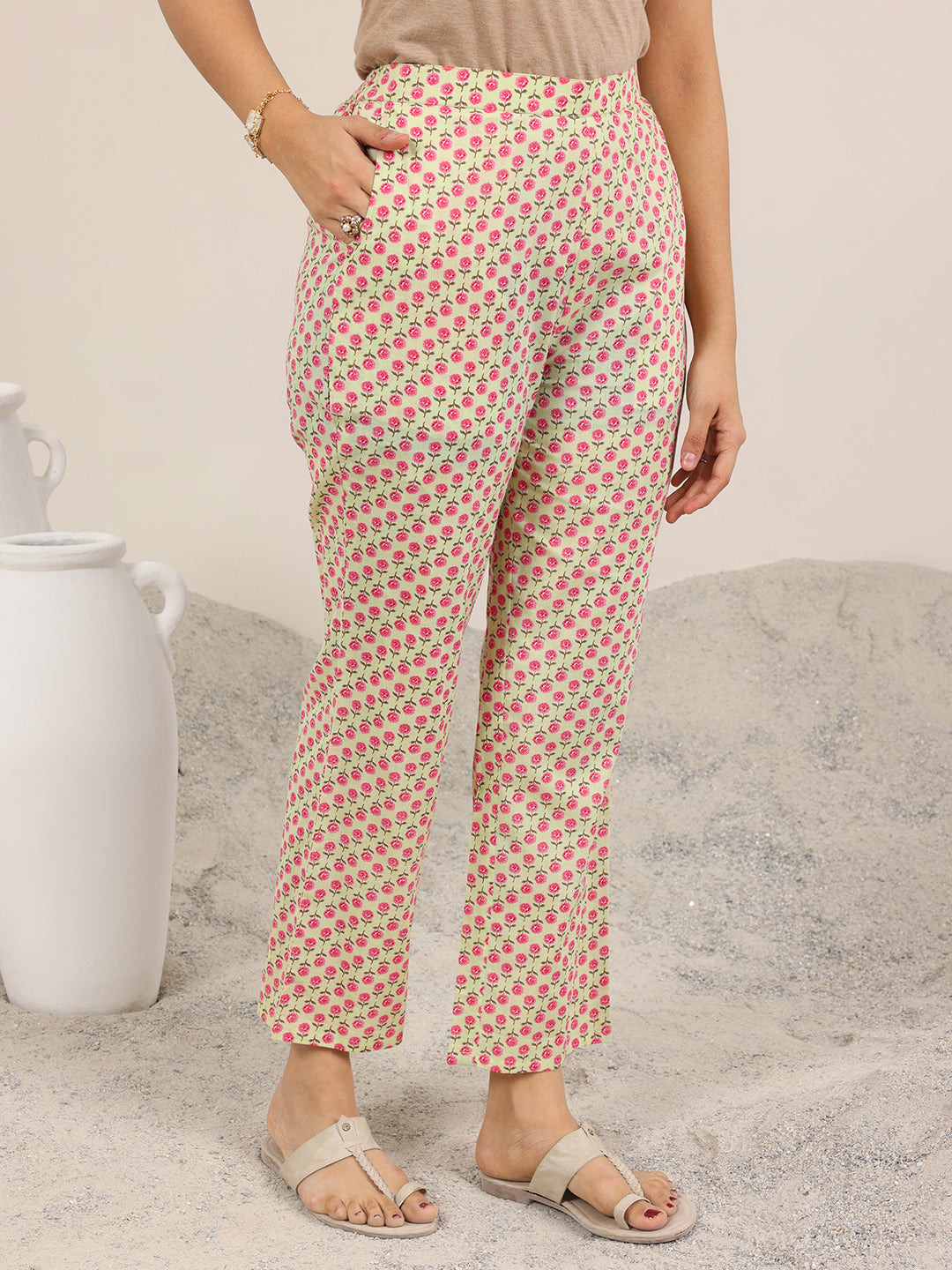 Our 2-piece cream cotton straight-fit kurta features a round neckline and regular sleeves. Complemented with Straight Pants with a Partially Partially Elasticated waistband and Roomy Pockets. . Adorned with floral prints, this style is perfect for casual wear.