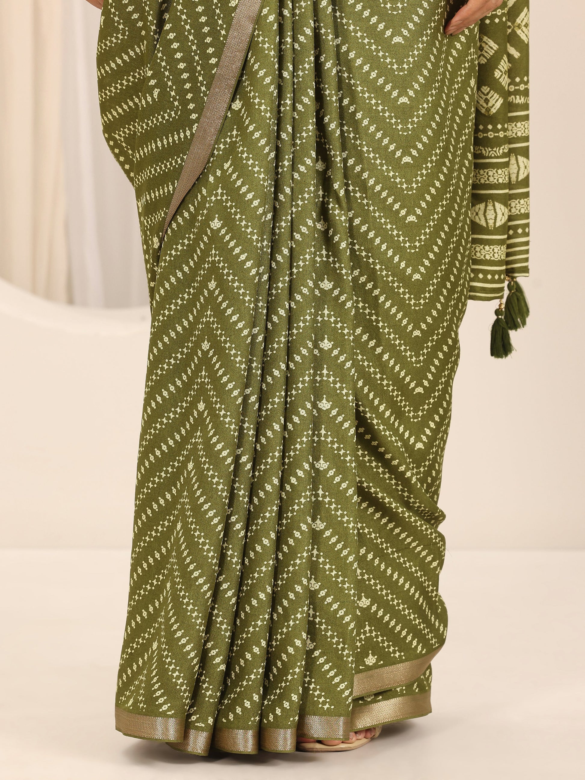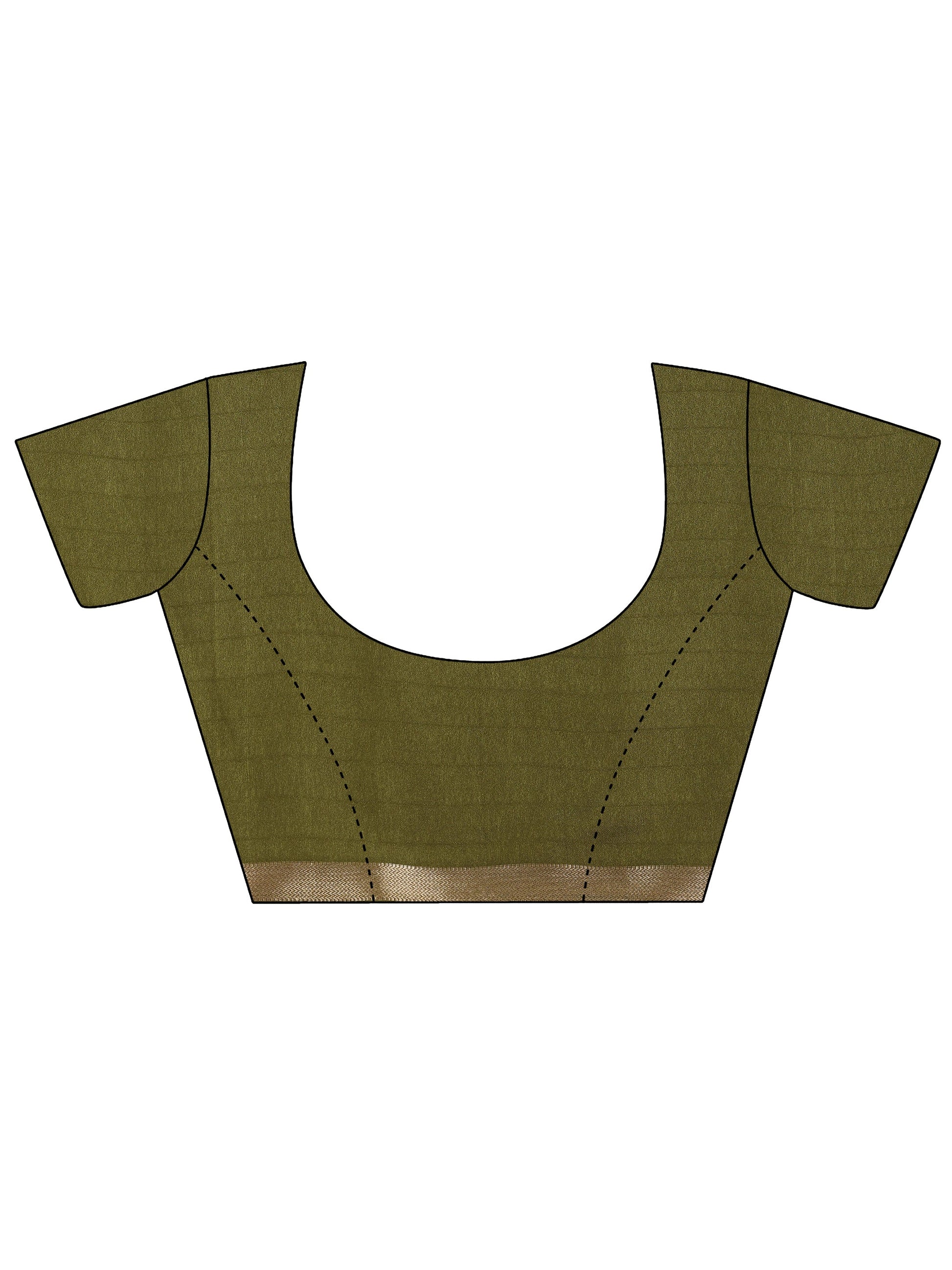 Our olive printed Georgette saree features captivating ethnic motifs print. This charming saree is perfect for semi festive occasions.