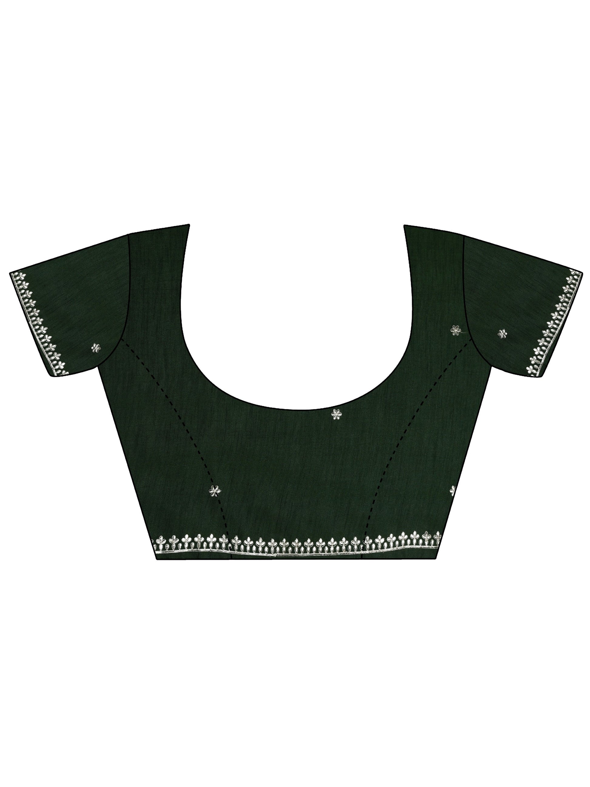 Green Printed Nylon Saree With Unstitched Blouse Piece