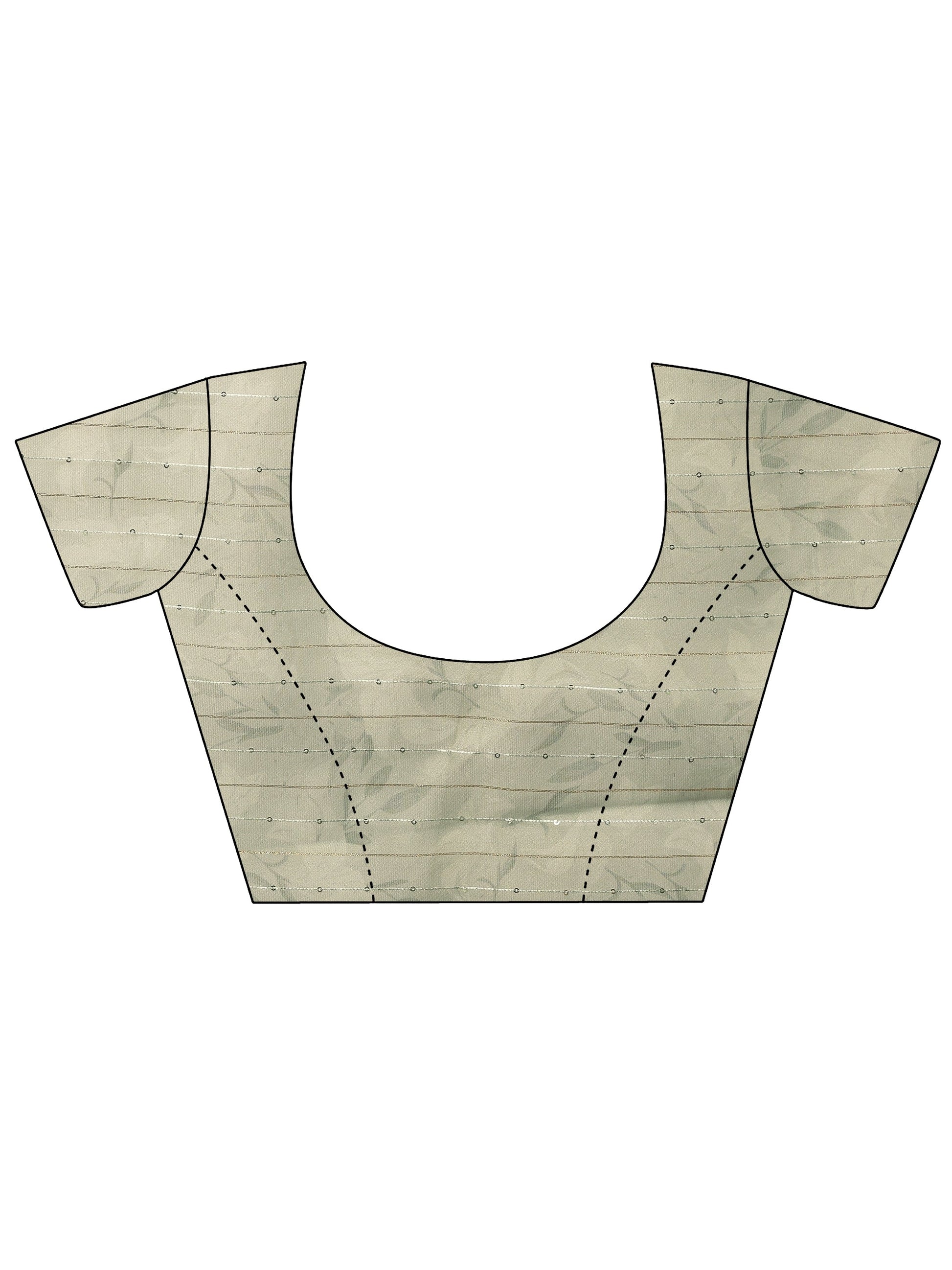 Green Printed Nylon Saree With Unstitched Blouse Piece