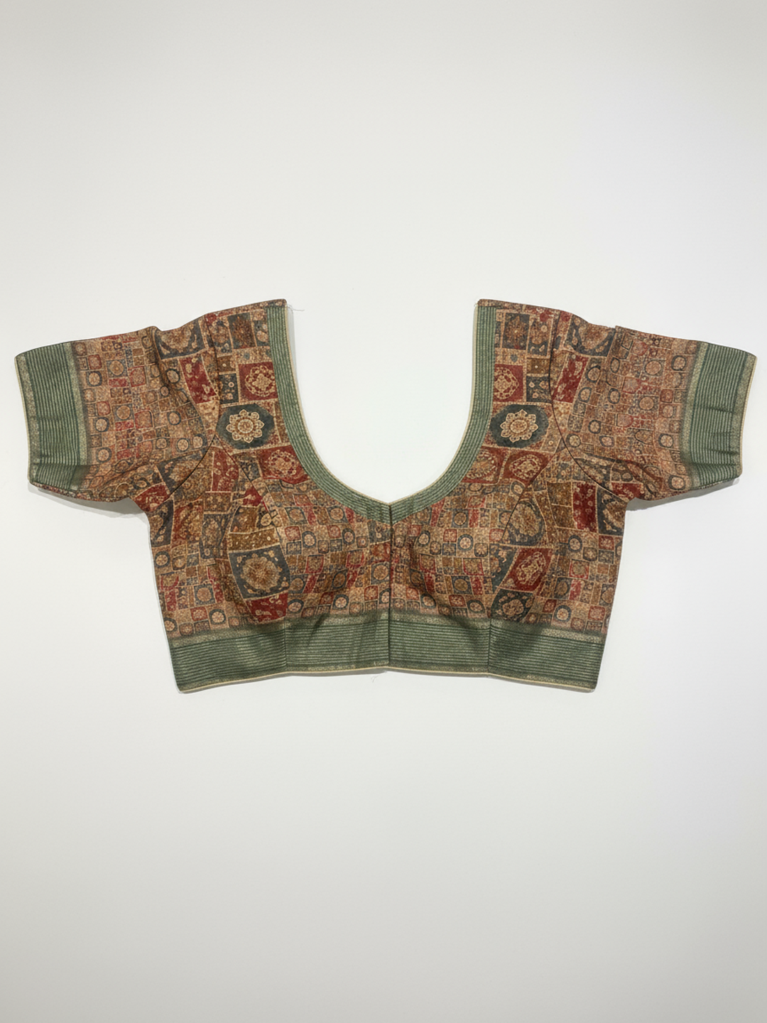 Green Printed Pure Georgette Saree With Unstitched Blouse Piece