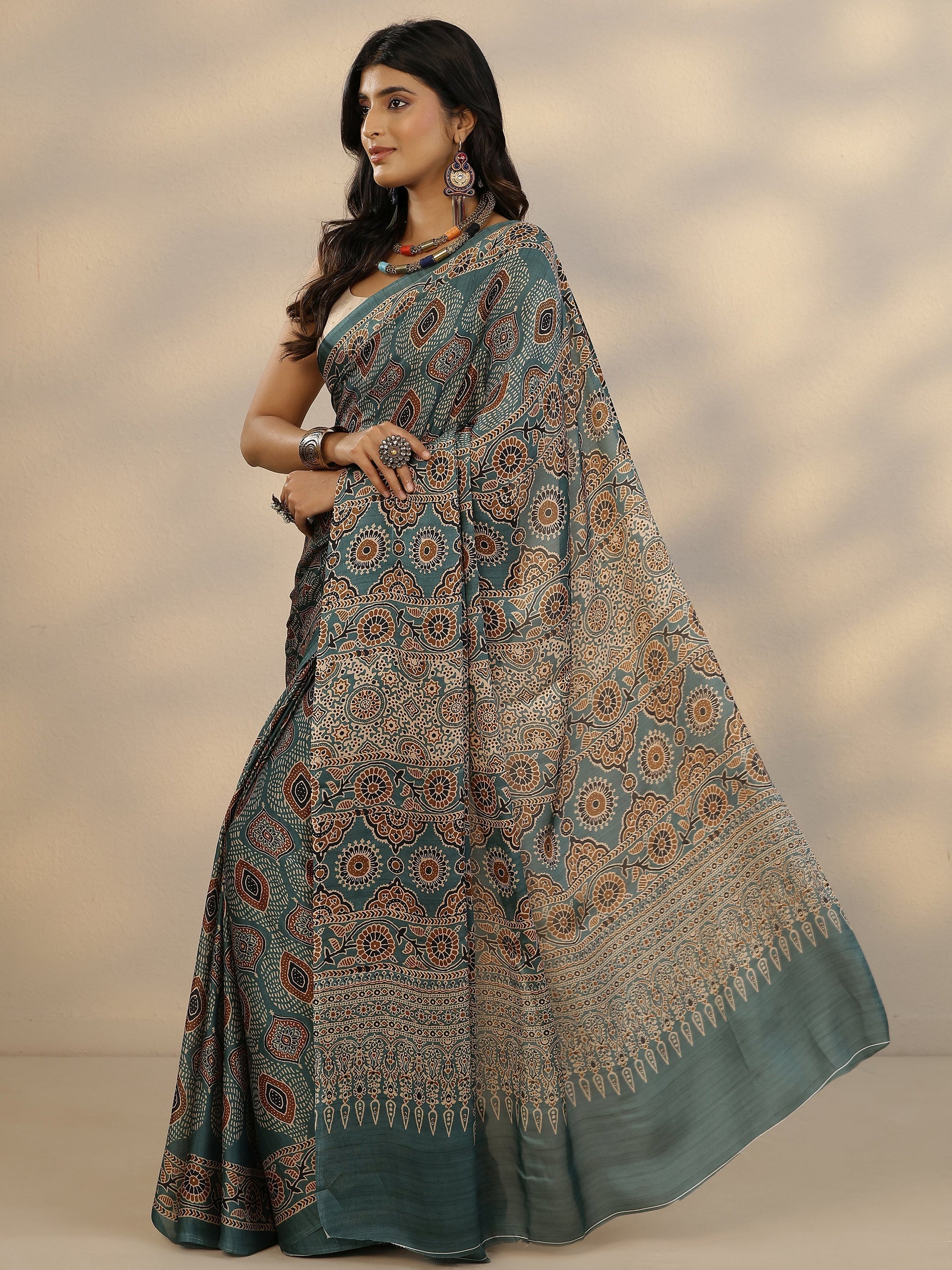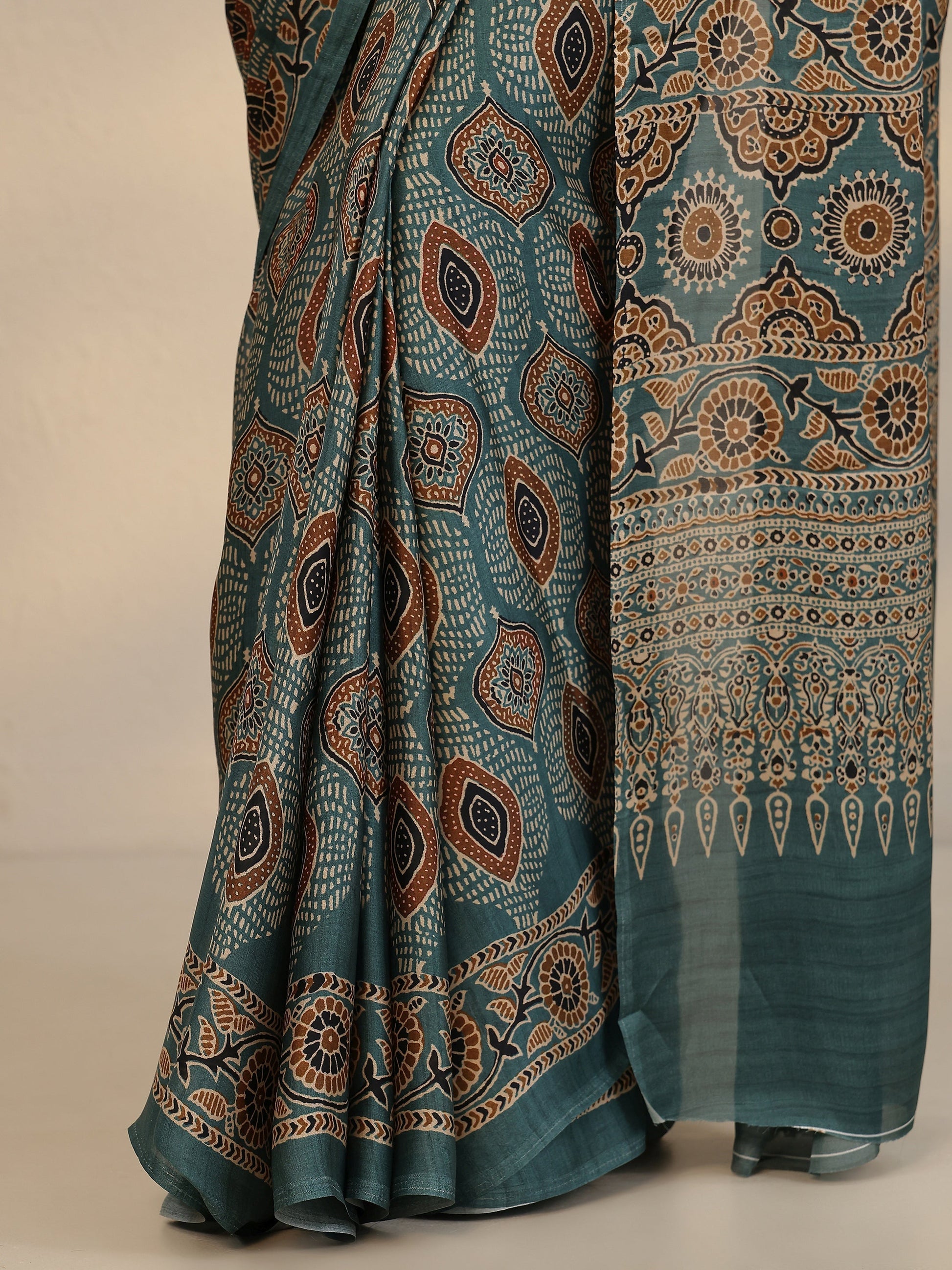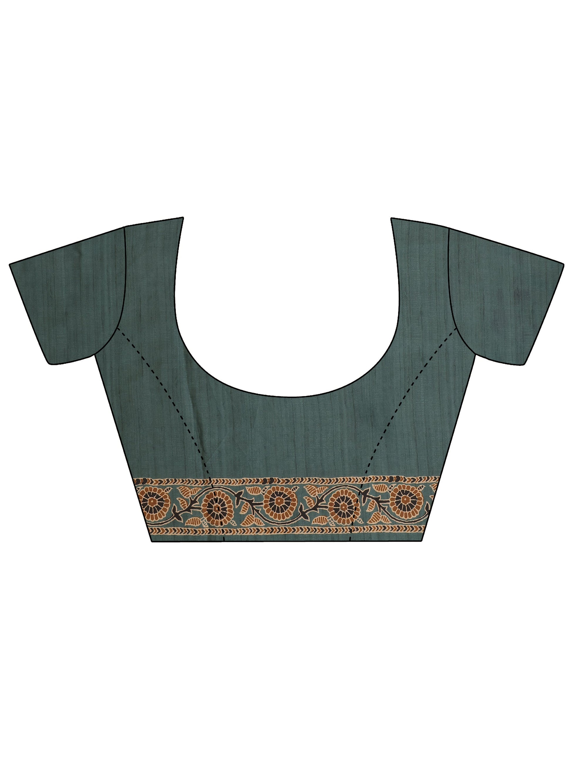 Green Printed Satin Saree With Unstitched Blouse Piece