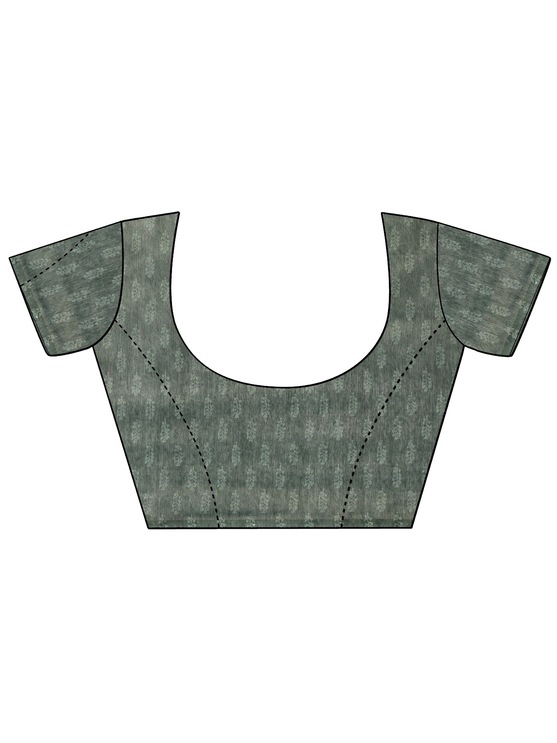Green Printed Silk Blend Saree With Unstitched Blouse Piece