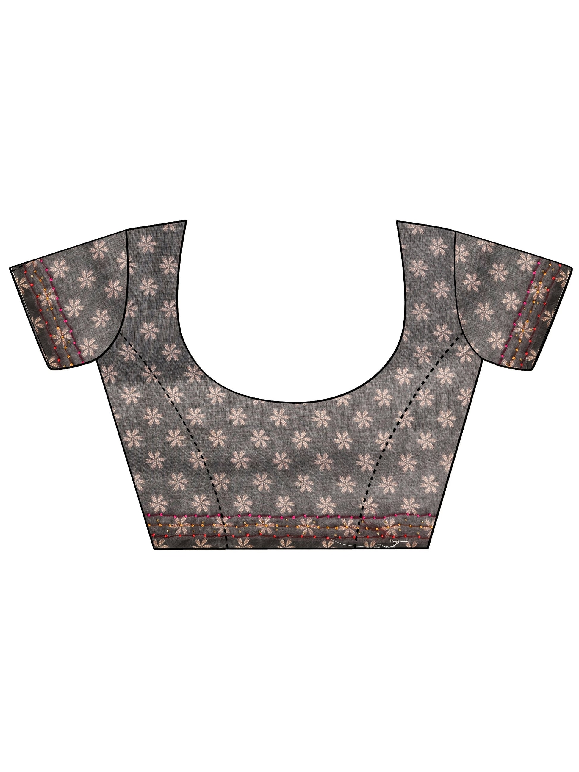 Our Black Printed Silk Blend Saree Features Captivating Floral Printed Design. Complemented With An Unstitched Blouse Piece. This Charming Saree Is Perfect For Festive Wear