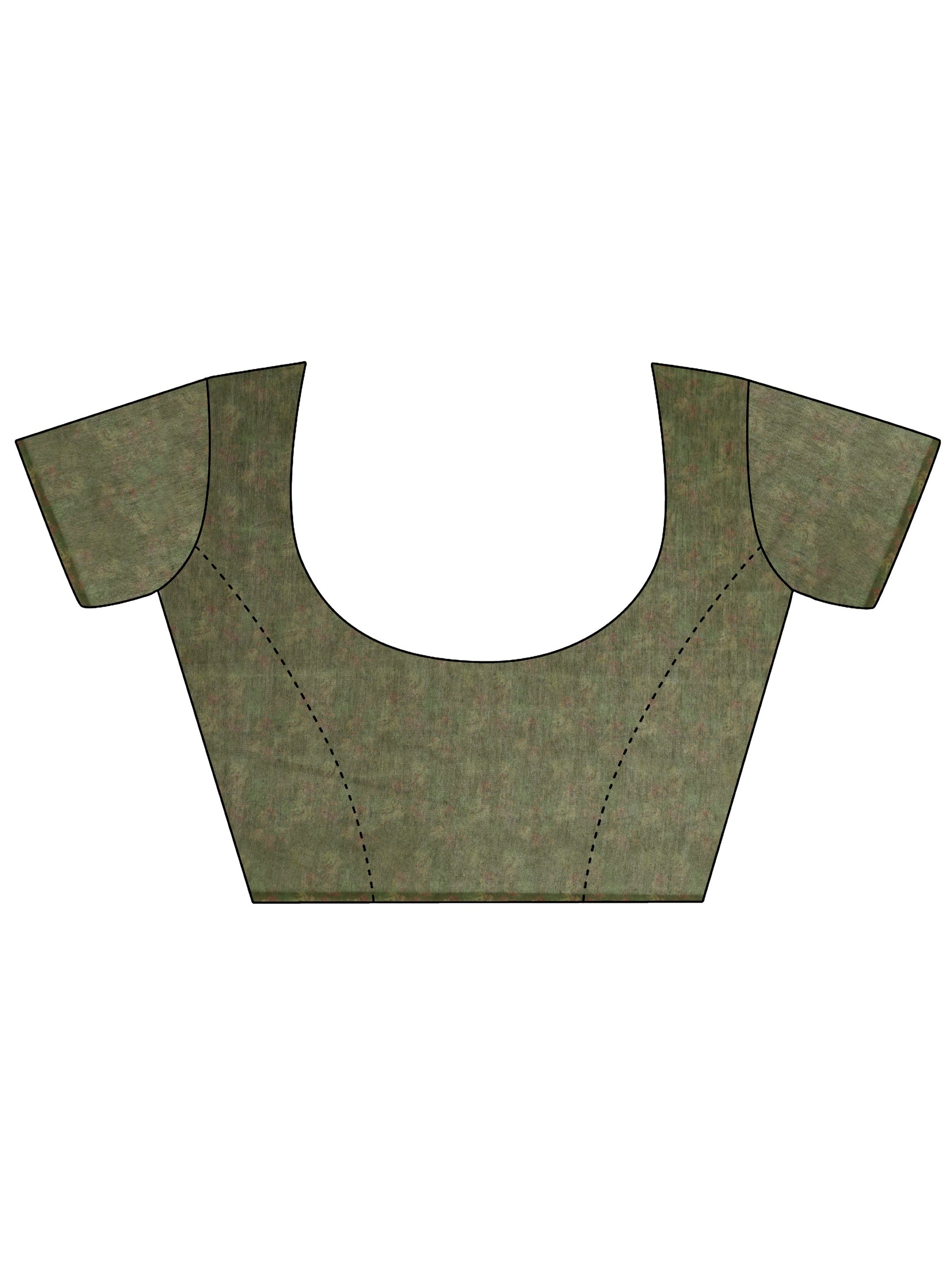 Green Printed Silk Blend Saree With Unstitched Blouse Piece