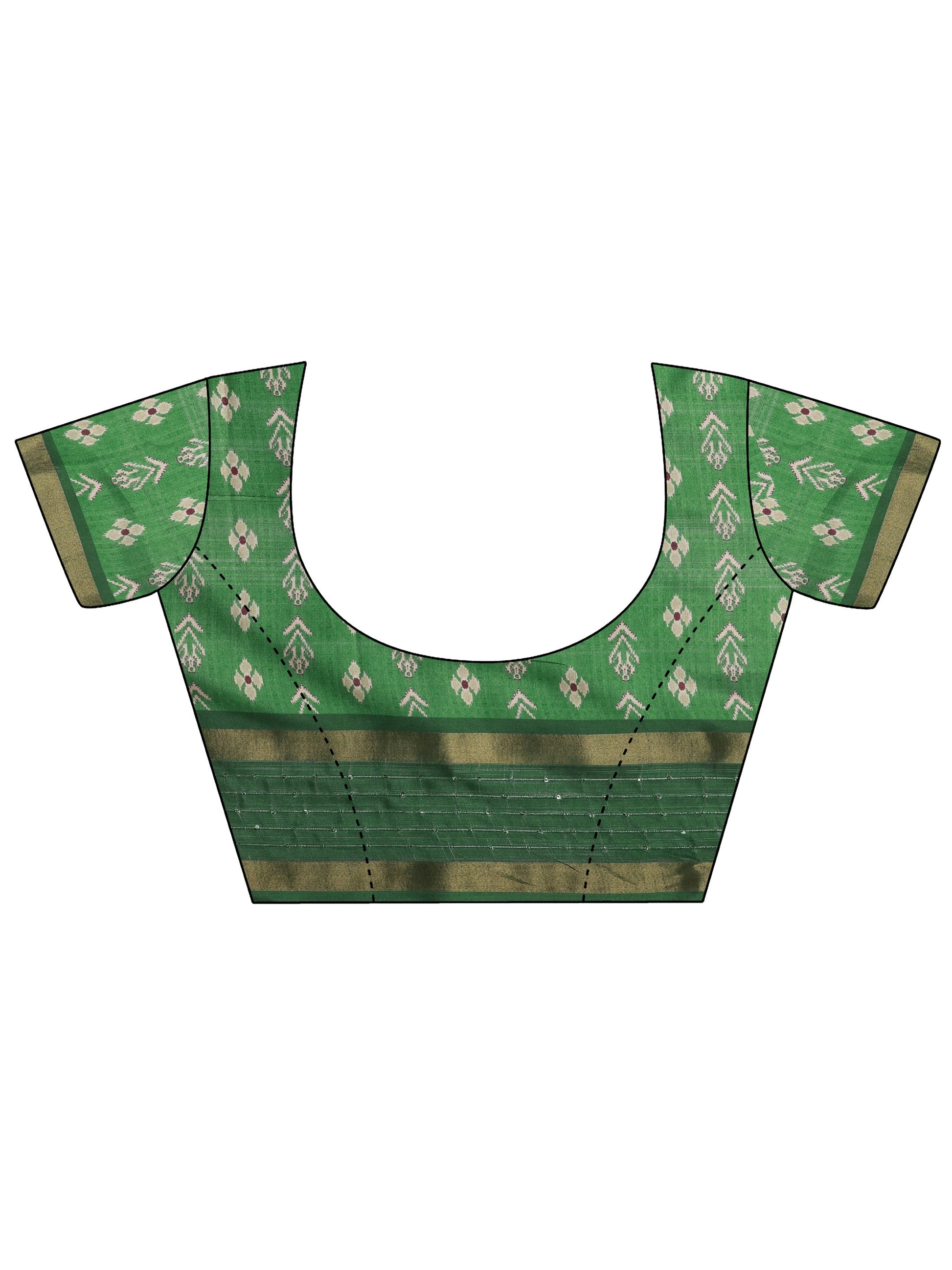 Green Printed Silk blend Saree With Unstitched Blouse Piece