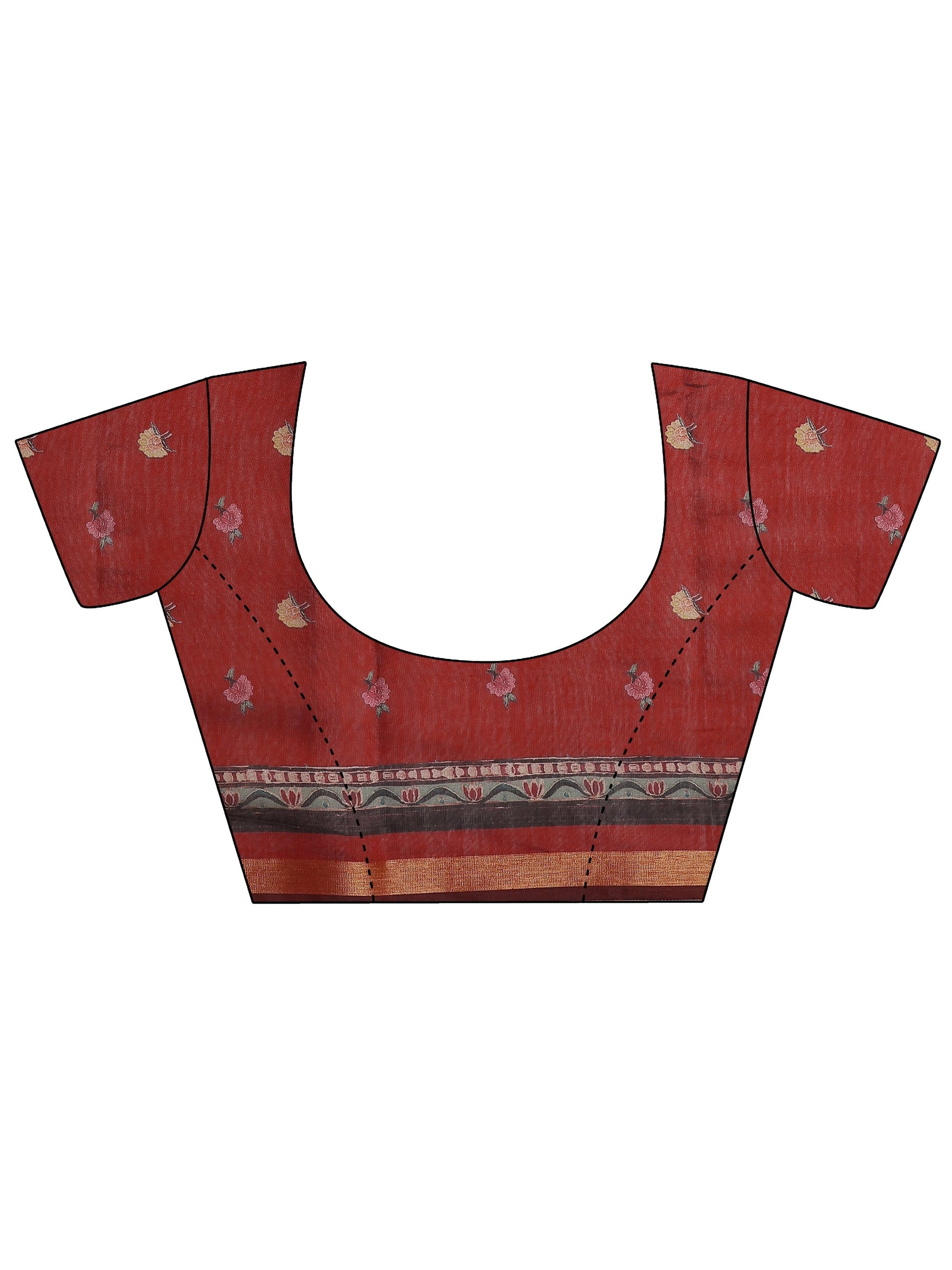 Green Printed Silk Blend Saree With Unstitched Blouse Piece