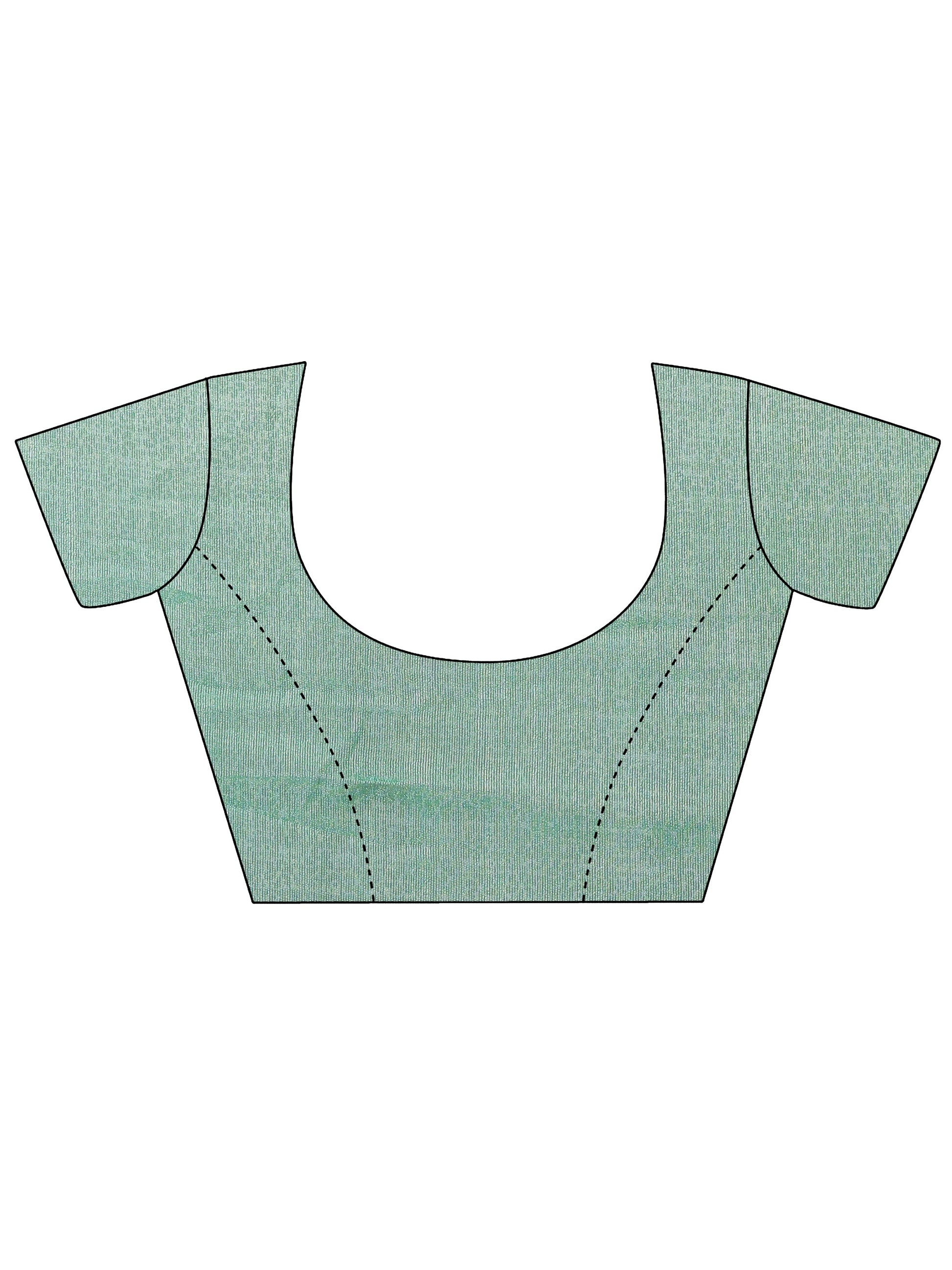 Green Printed Silk Blend Sarees With Unstitched Blouse Piece