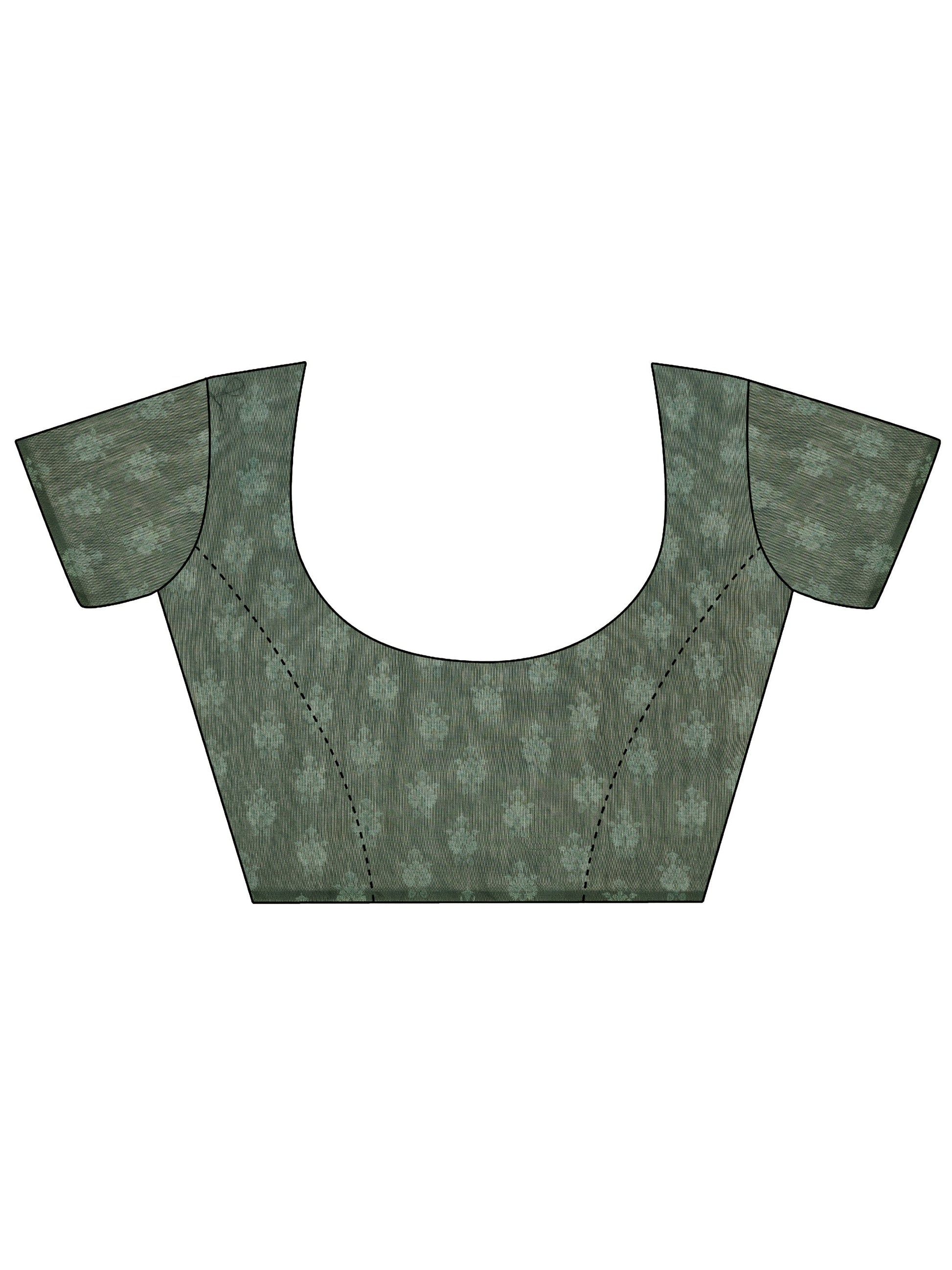 Green Printed Silk Saree With Unstitched Blouse Piece