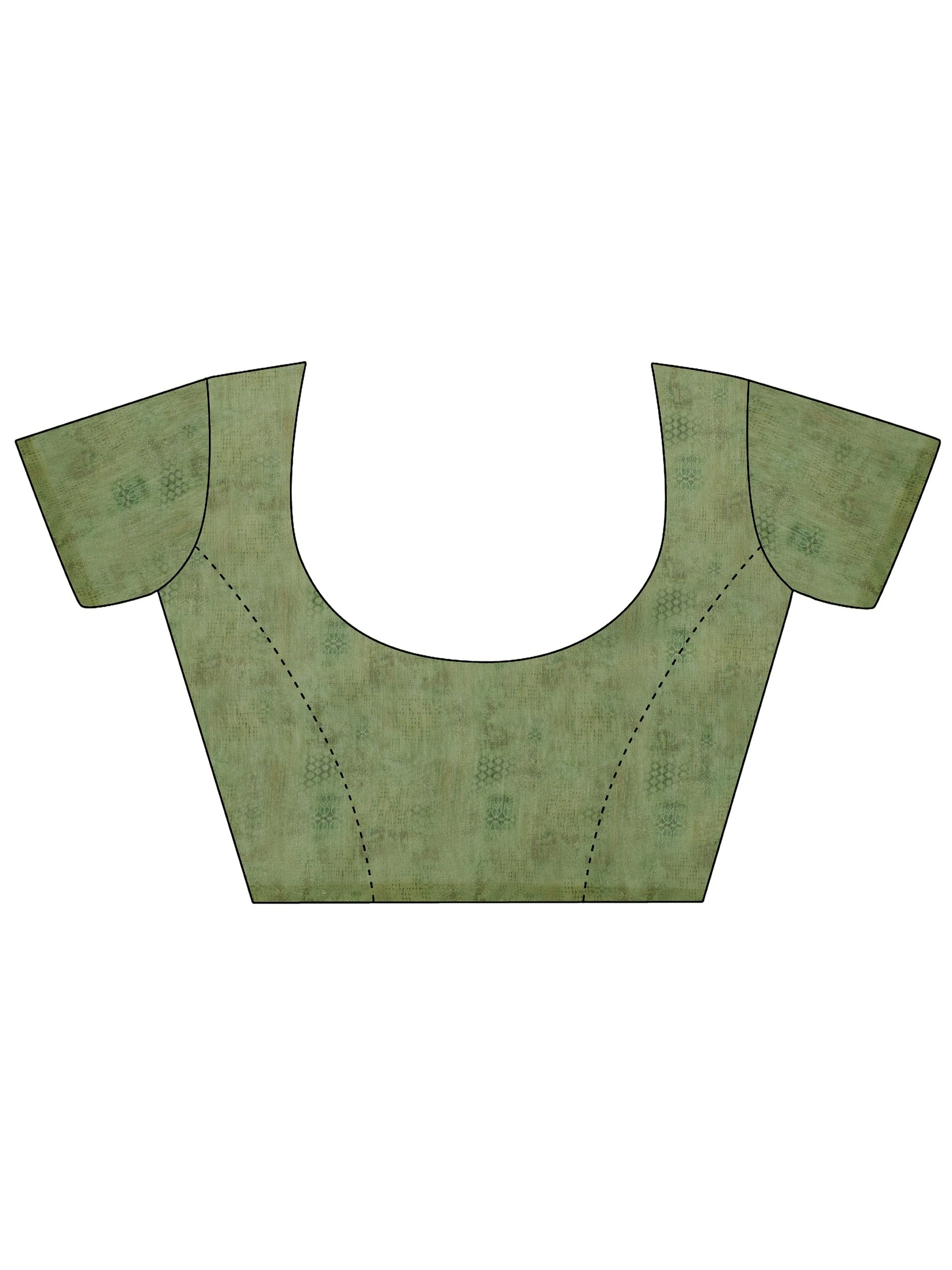 Green Printed Silk Saree With Unstitched Blouse Piece