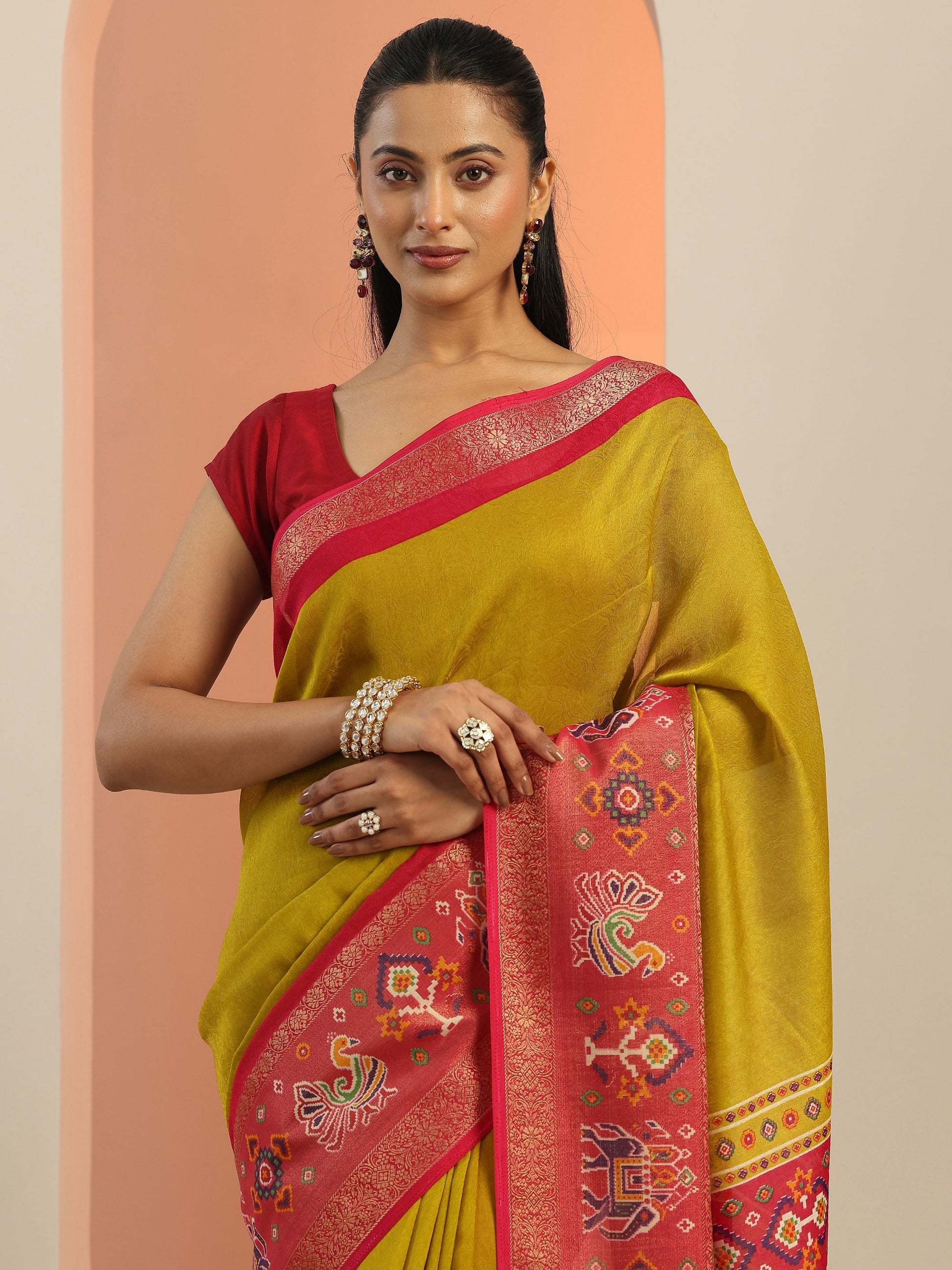 Our Green Printed Georgette Saree Features Captivating Woven Design Print. Complemented With A Unstitched Blouse Piece. This Charming Saree Is Perfect For Festive Wear.