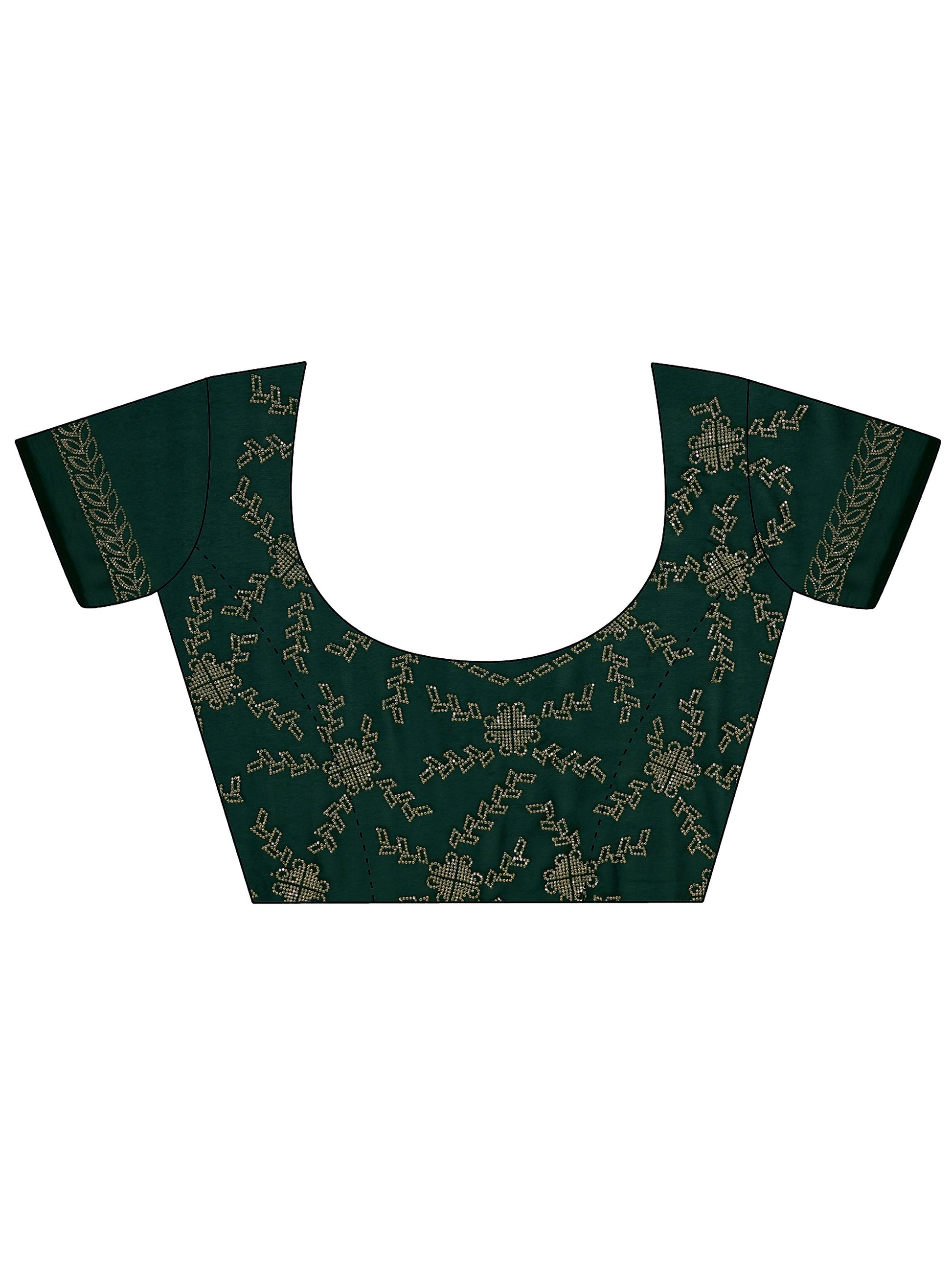 Our Green satin saree features captivating solid embellishments. Complemented with a stitched blouse. This charming saree is perfect for dark festive occasions.