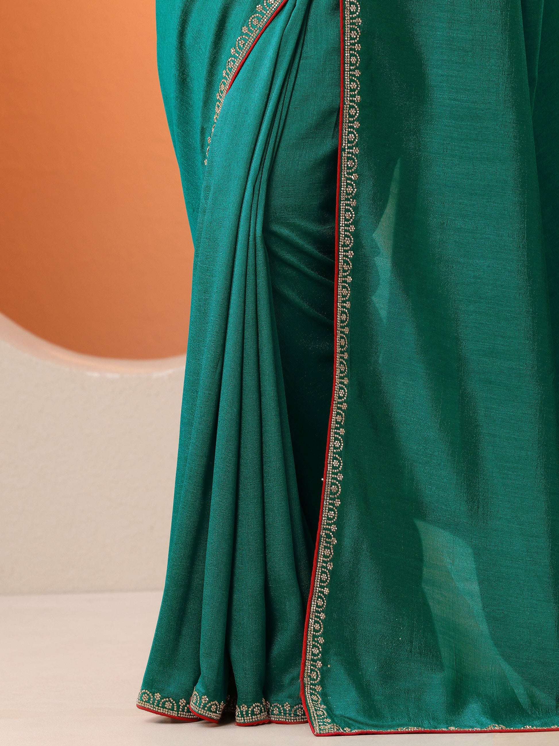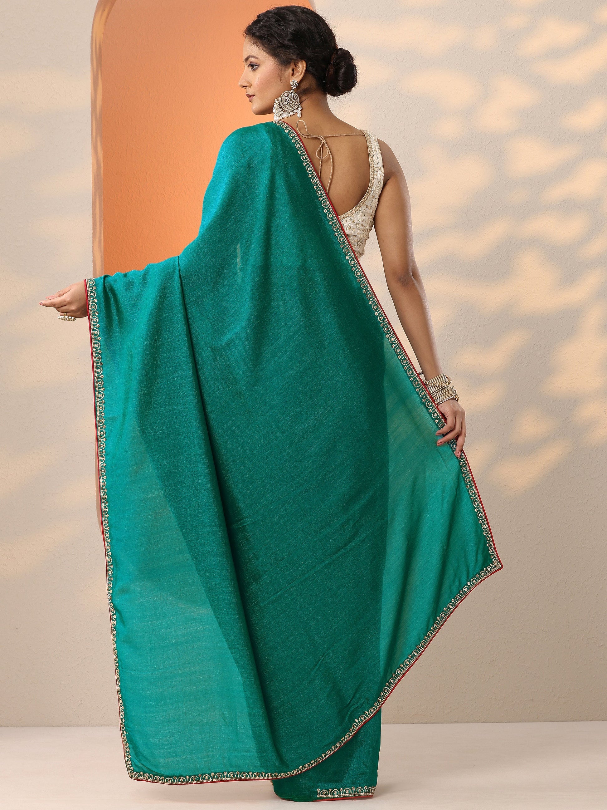 Green Solid Silk Blend Saree With Unstitched Blouse Piece