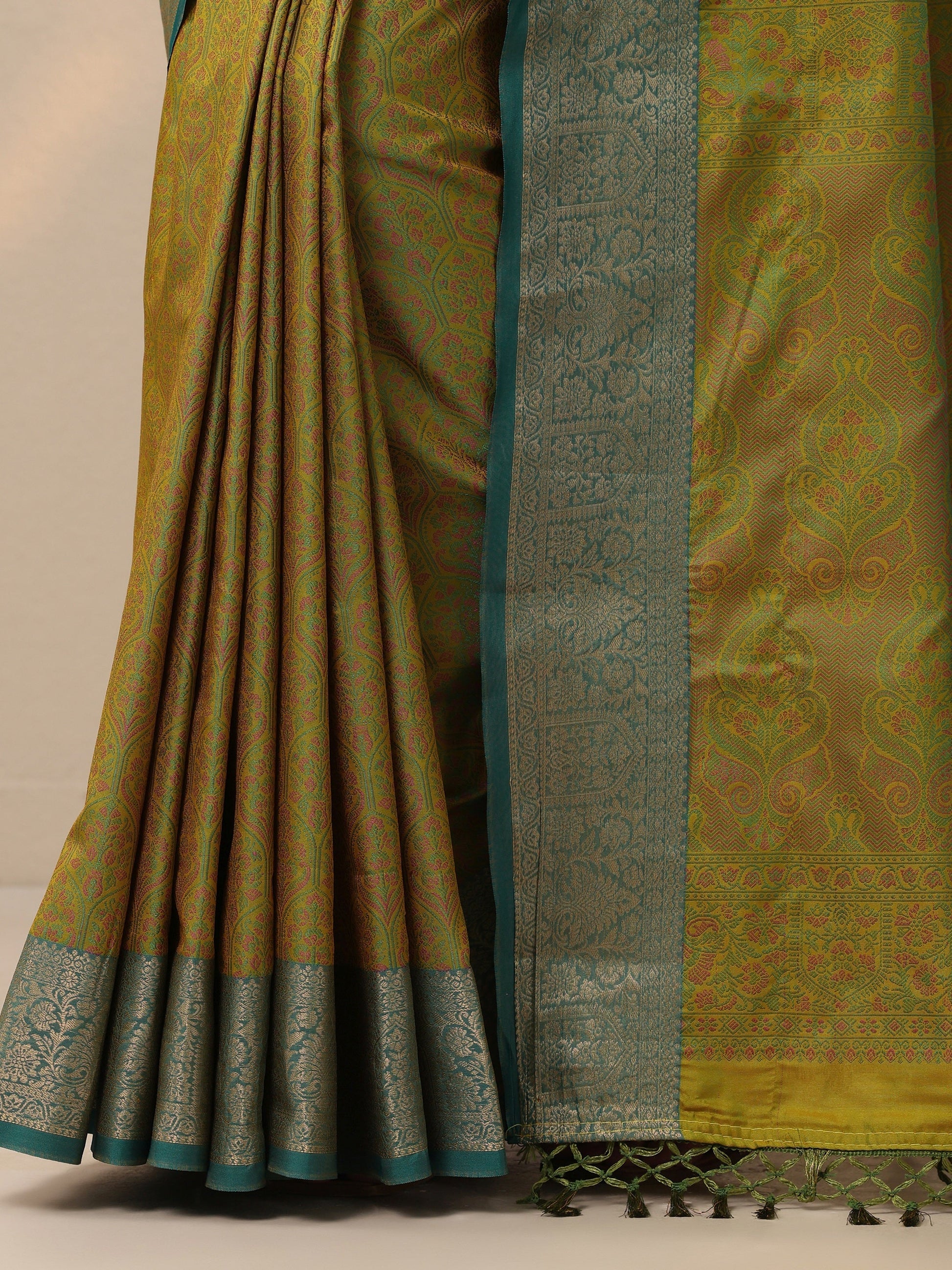 Green Woven Design Banarasi Silk Blend Saree With Unstitched Blouse Piece