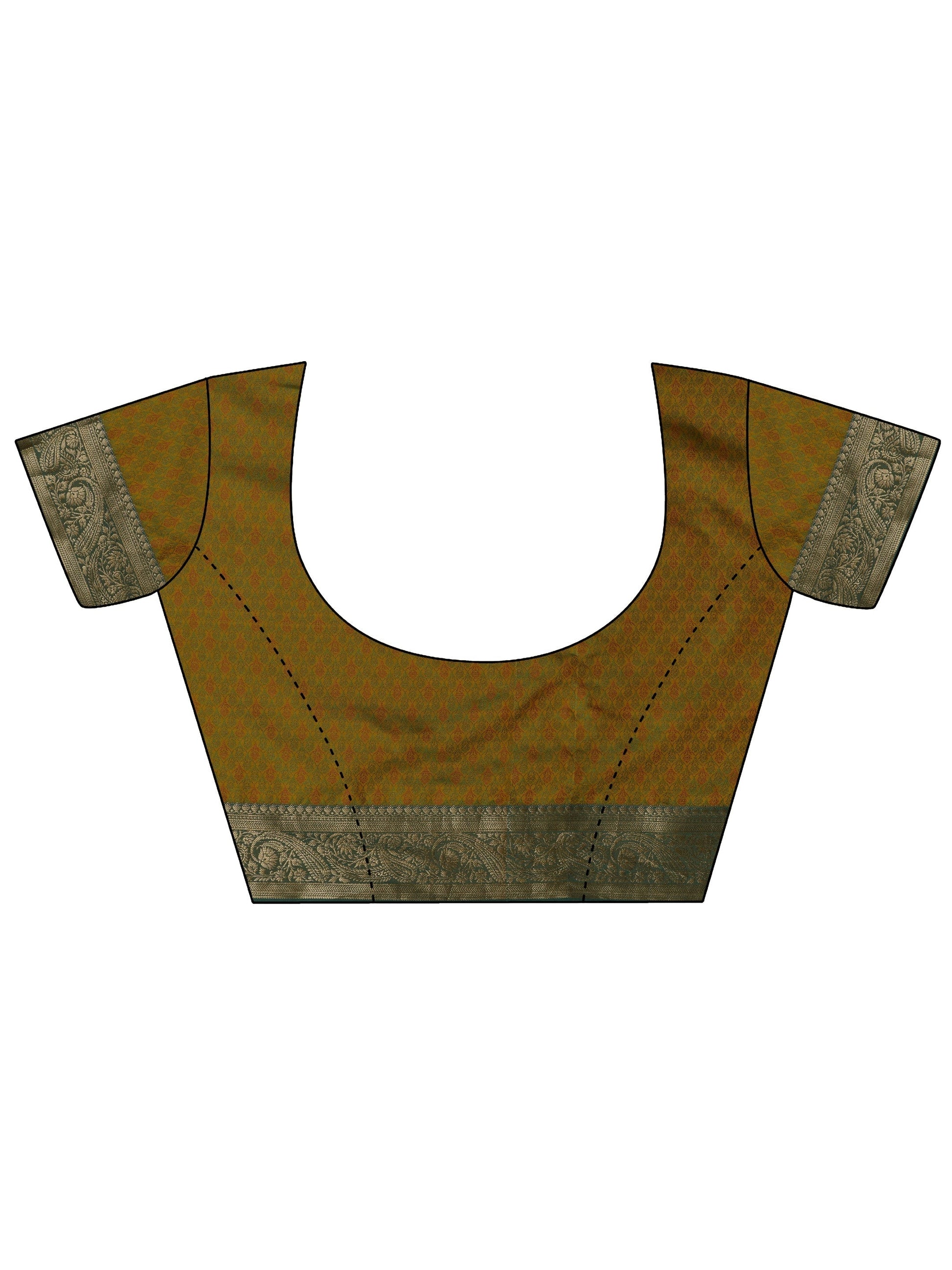 Our olive printed silk blend saree features captivating top pattern. Complemented with a blouse piece. This charming saree is perfect for occasion.