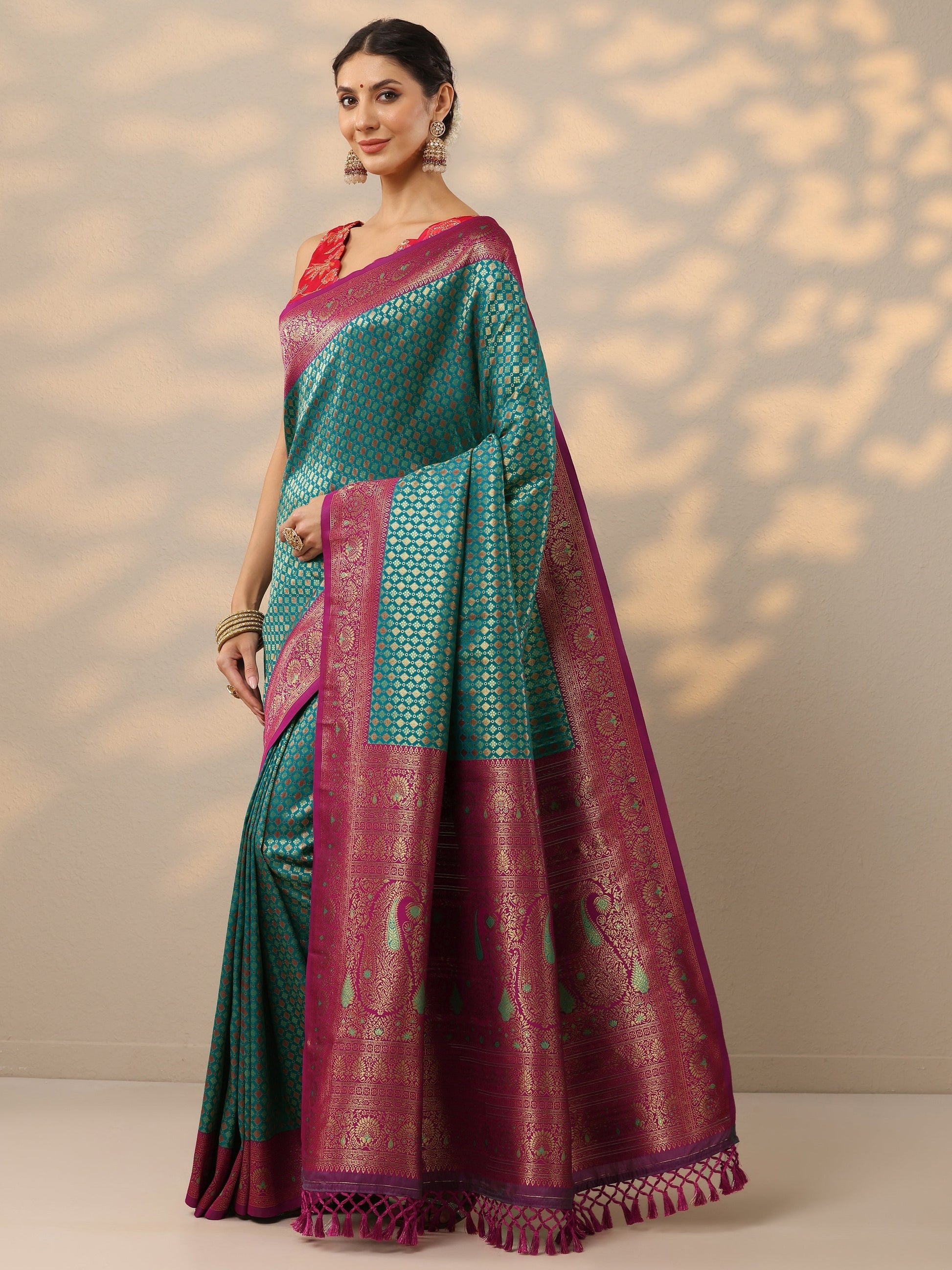 Green Woven Design Banarasi Silk Blend Saree With Unstitched Blouse Piece