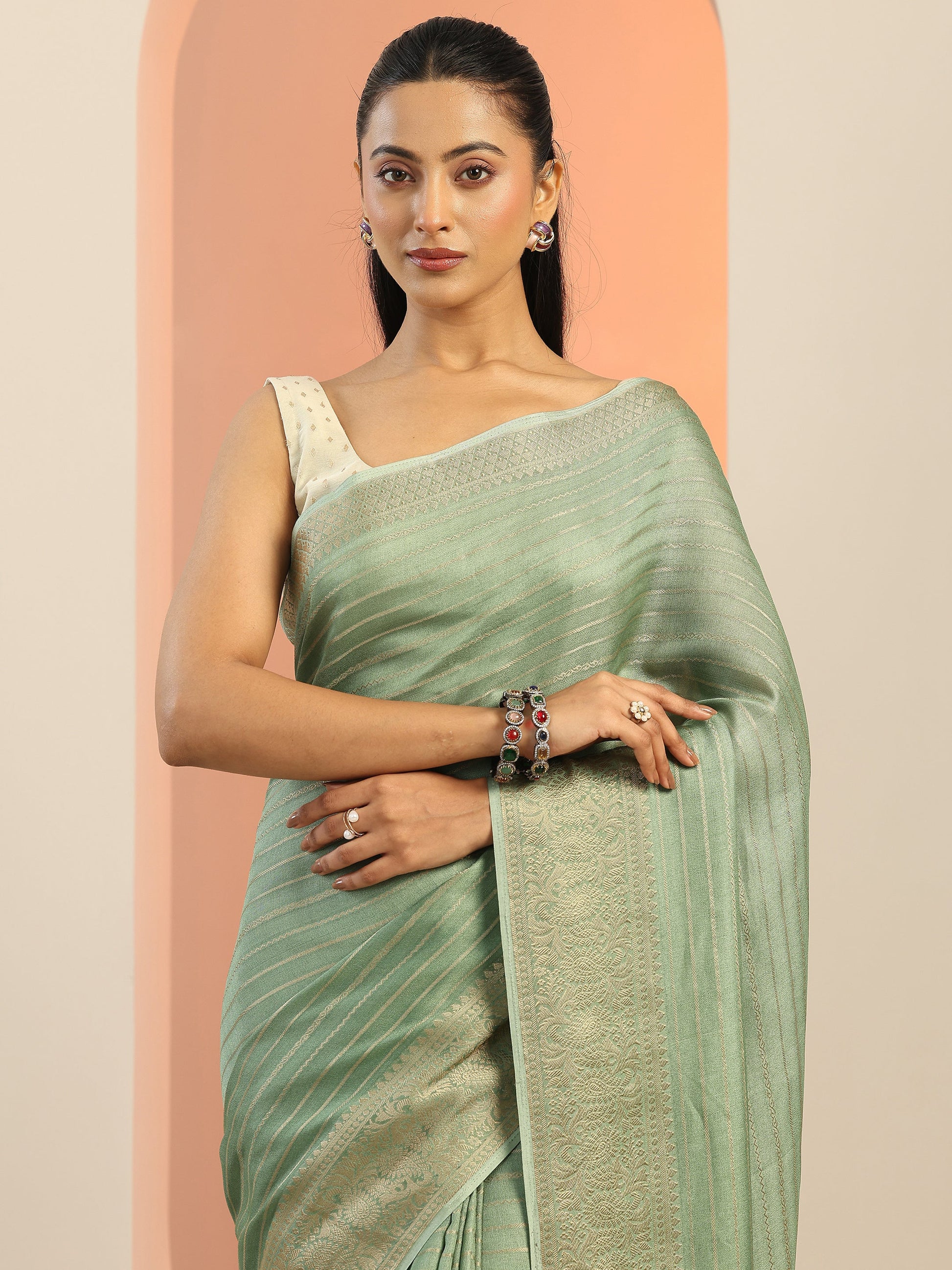 Green Woven Design Georgette Saree With Unstitched Blouse Piece
