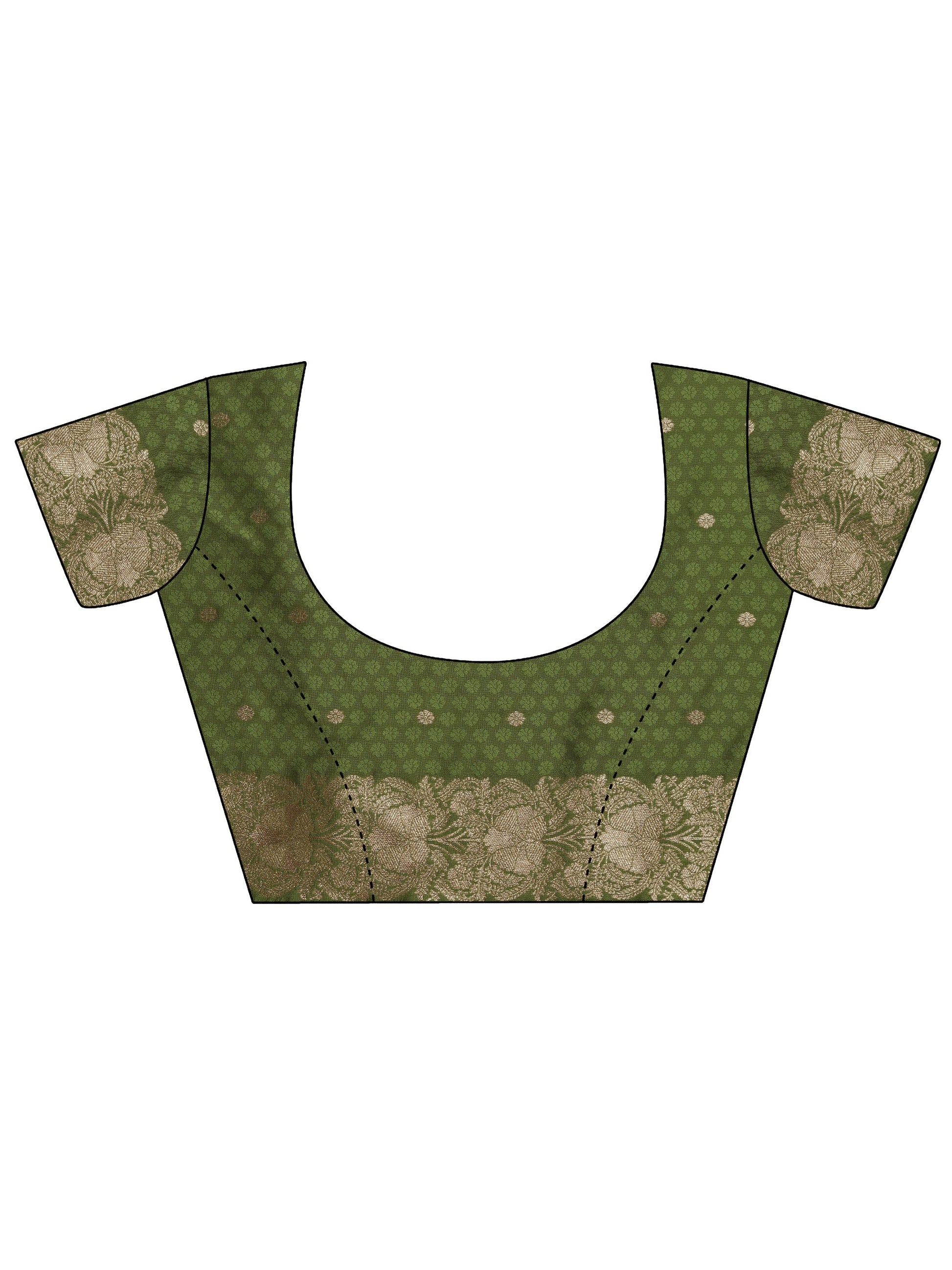 Our Green Woven Design Silk Blend Saree Features Captivating Floral Motifs. Complemented With A Unstitched Blouse Piece. This Charming Saree Is Perfect For Festive Wear