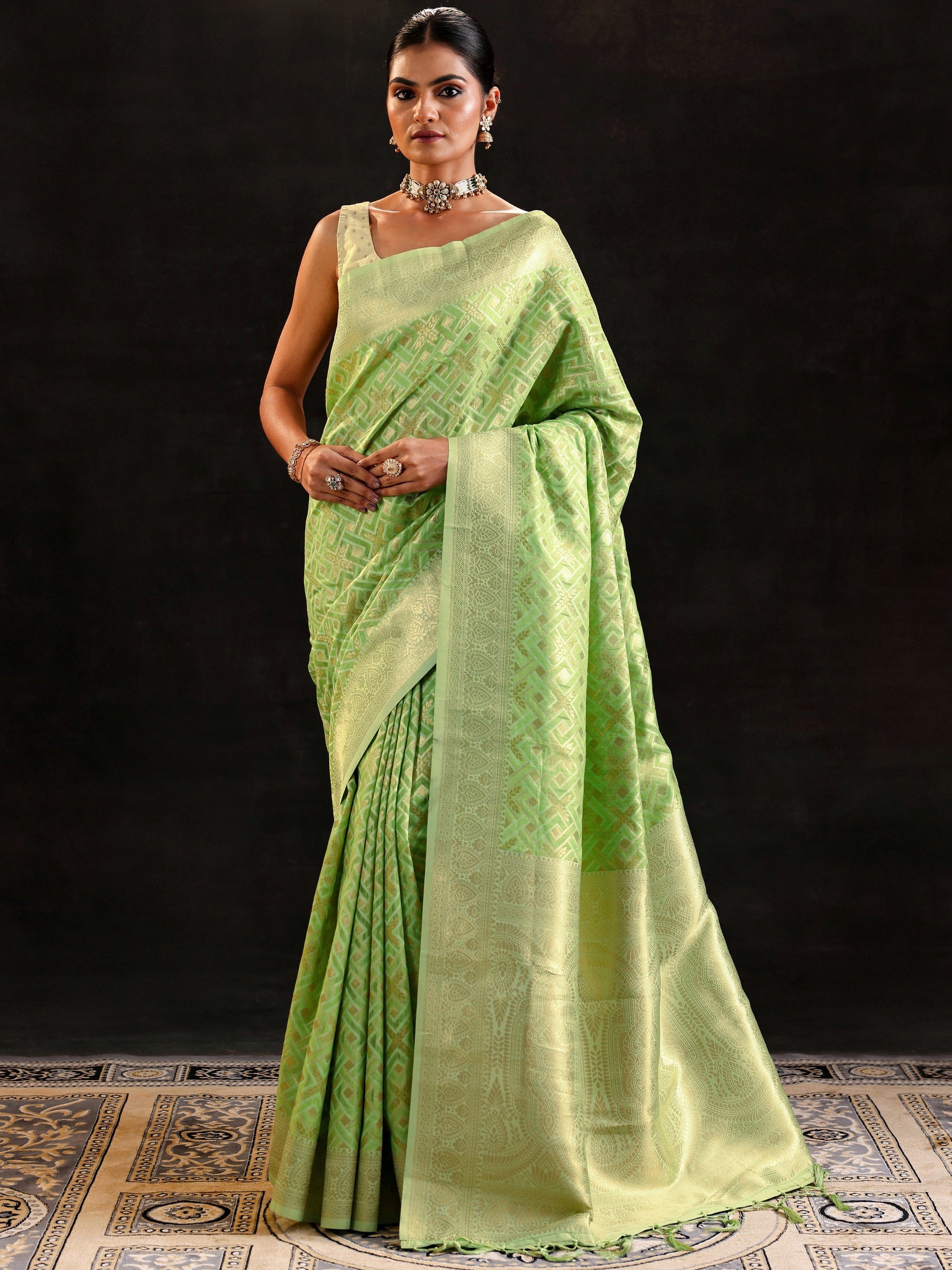 Green Woven Design Banarasi Silk Blend Saree With Unstitched Blouse Piece