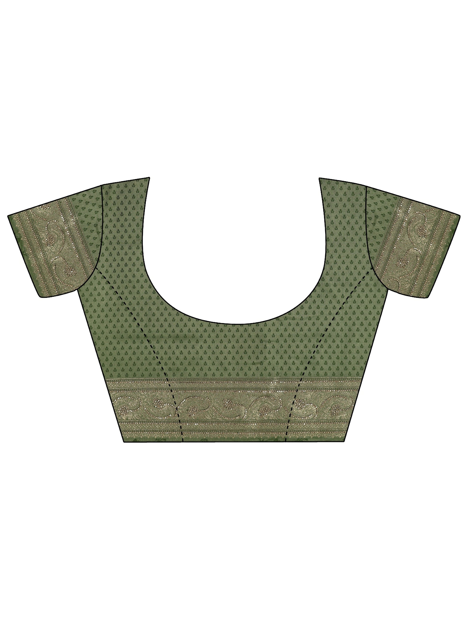Our Olive Woven Design Silk Blend Saree Features Captivating Embellishments. Complemented With A Unstitched Blouse Piece. This Charming Saree Is Perfect For Festive Wear.