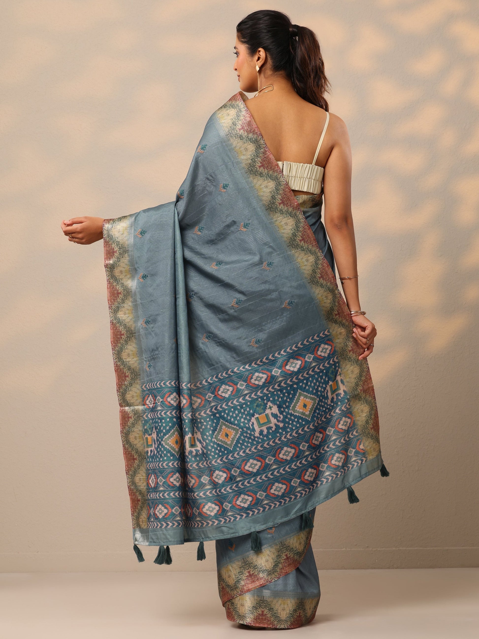 Green Woven Design Silk Blend Sarees With Unstitched Blouse Piece