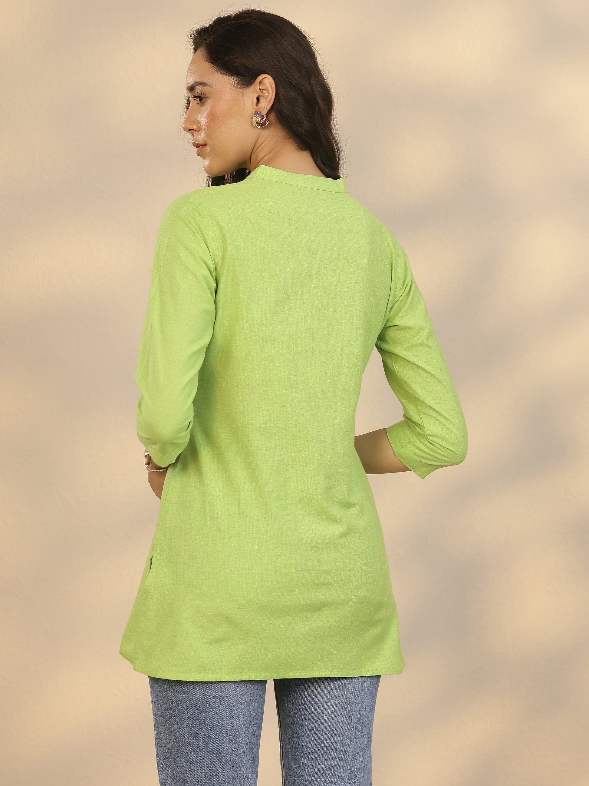 Green Yoke Design Cotton Blend Straight Short Kurti