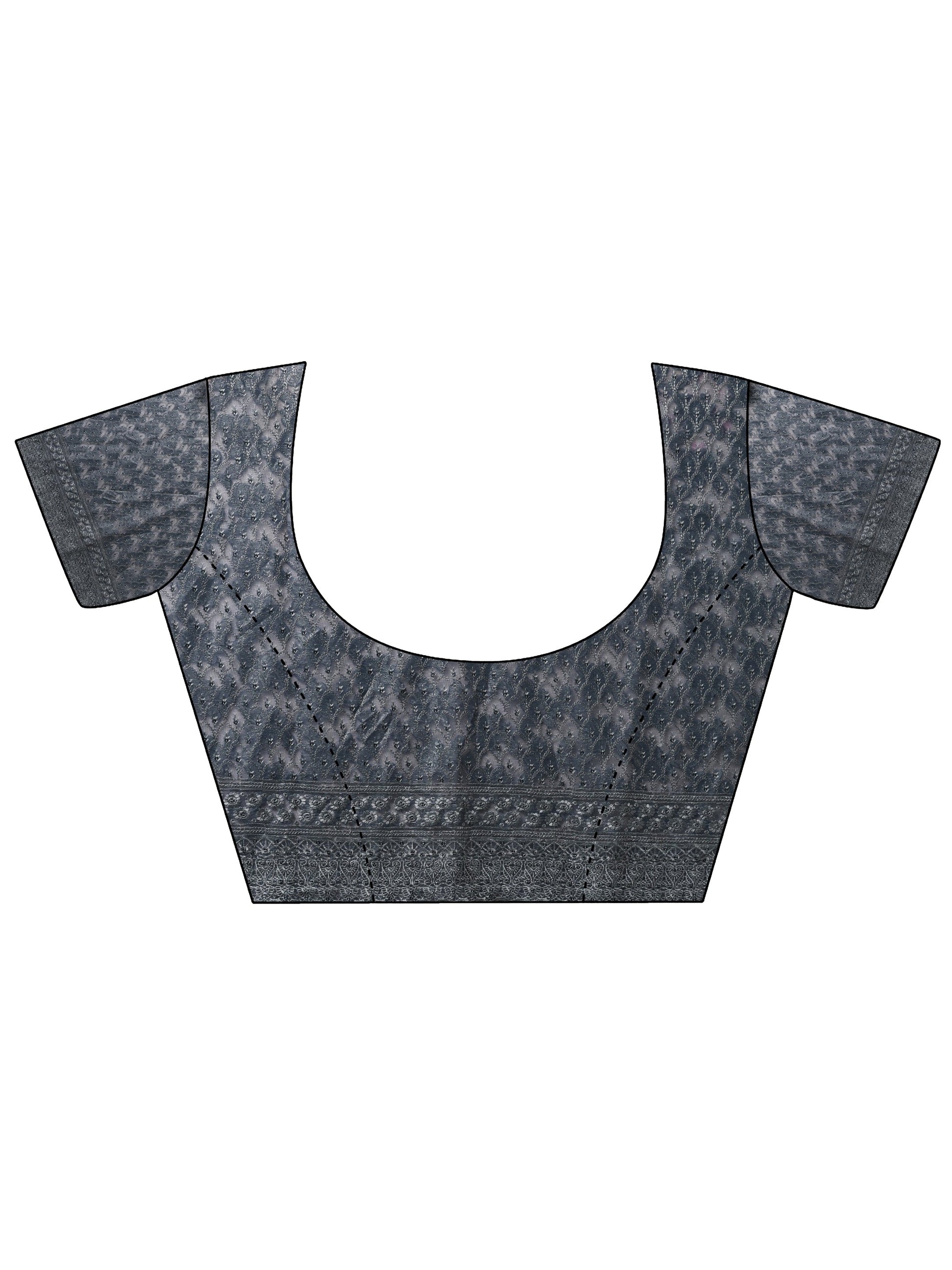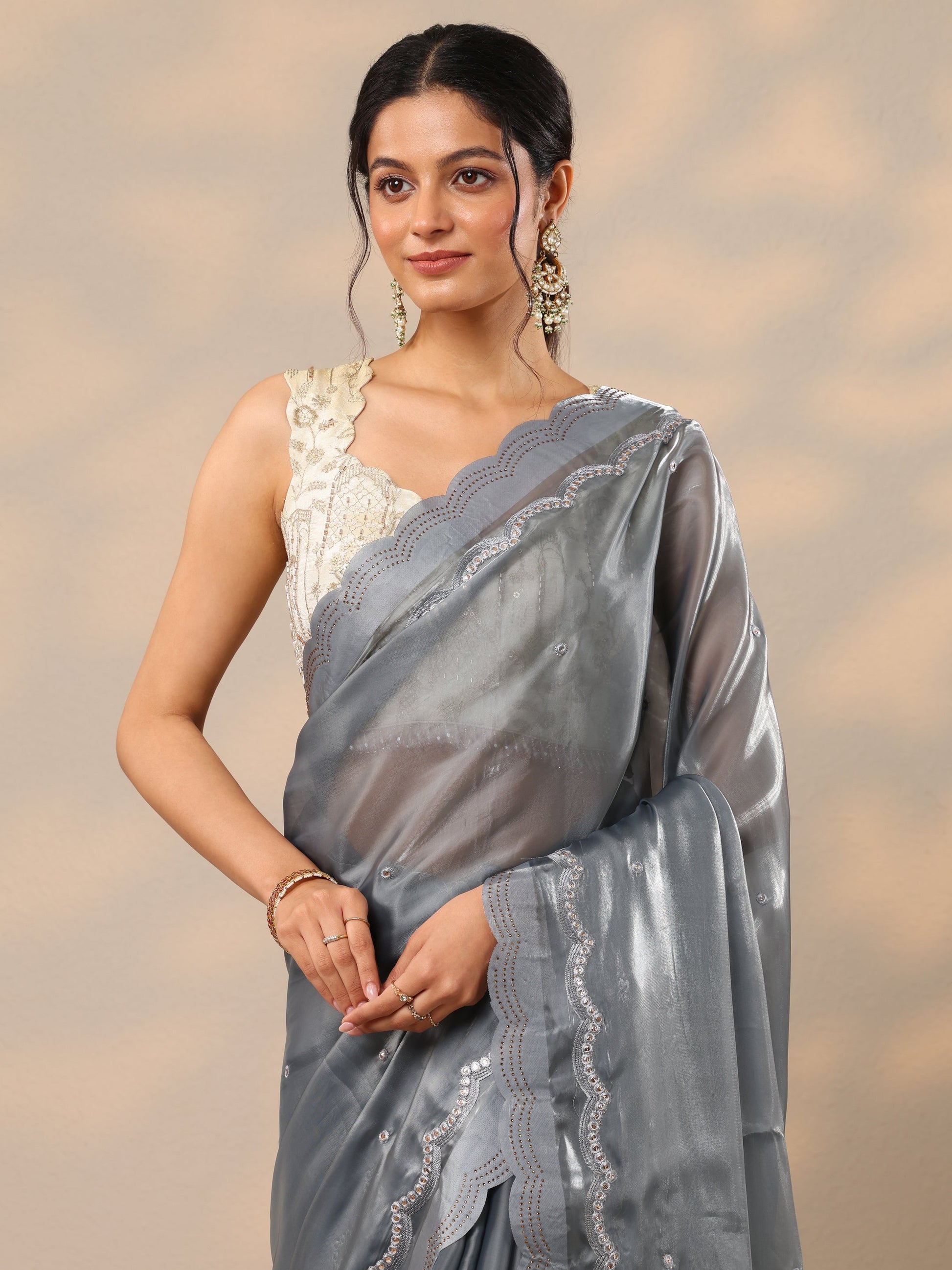 Grey Embellished Organza Sarees With Unstitched Blouse Piece
