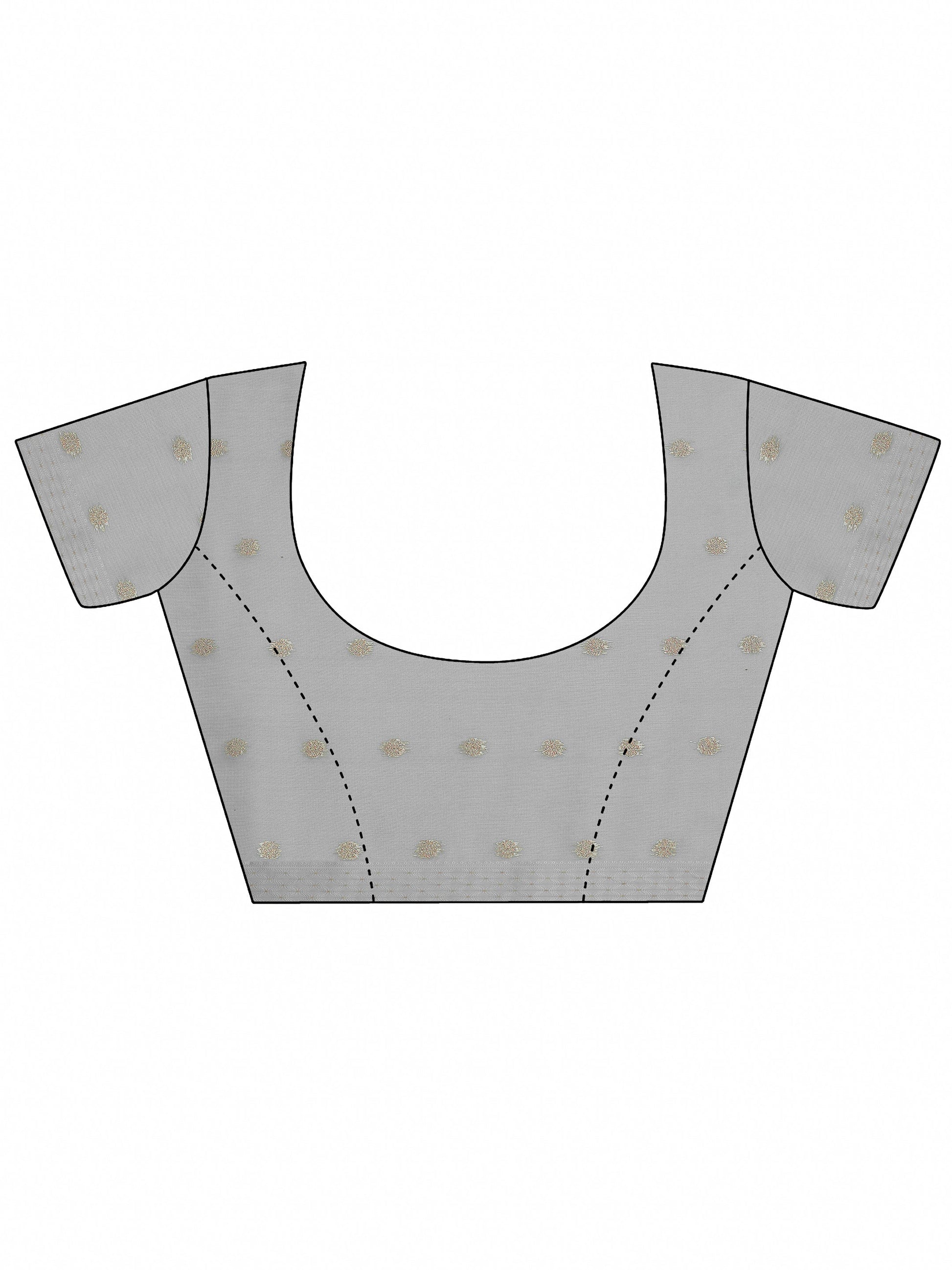 Grey Printed Chanderi Saree With Unstitched Blouse Piece