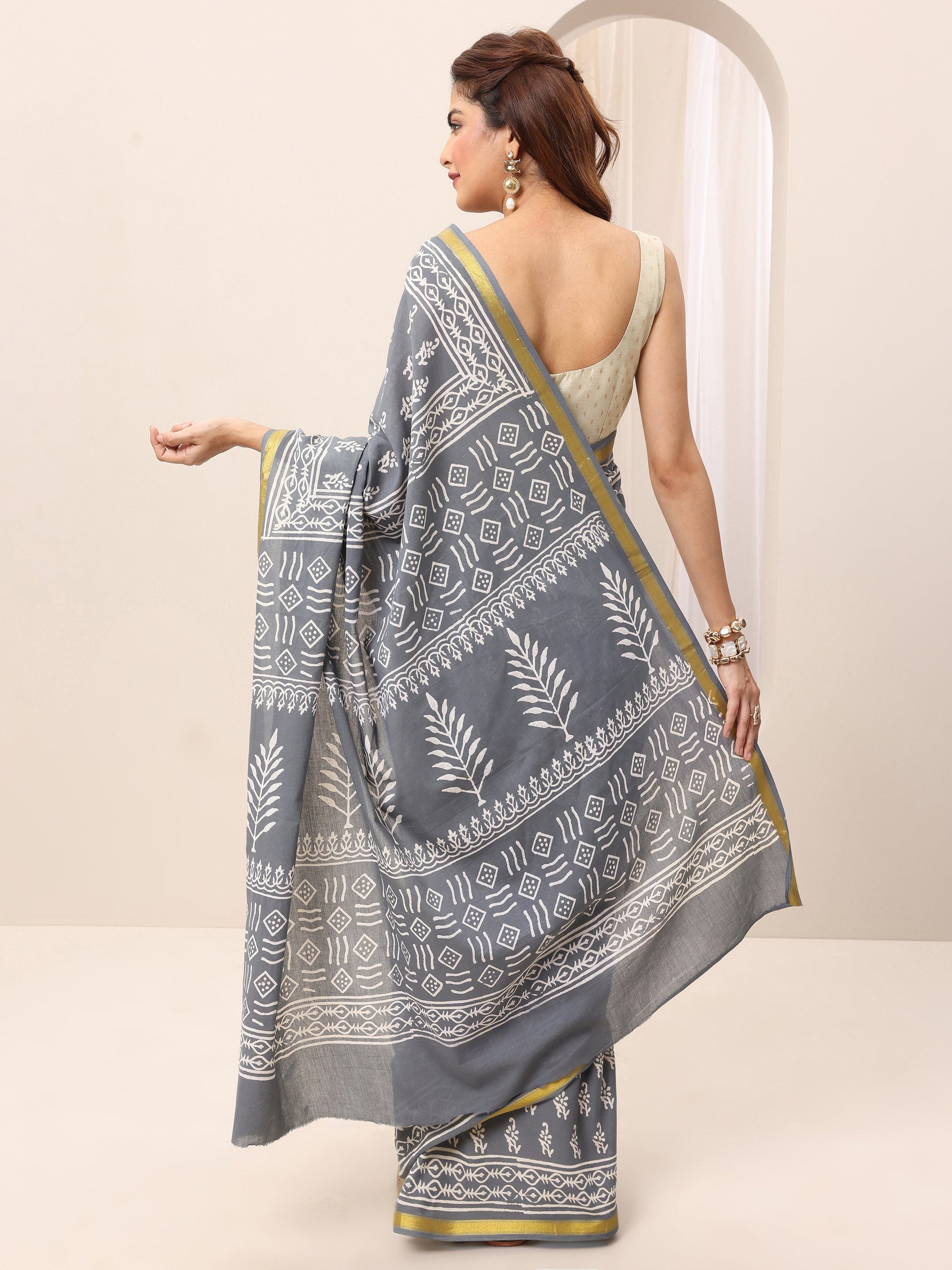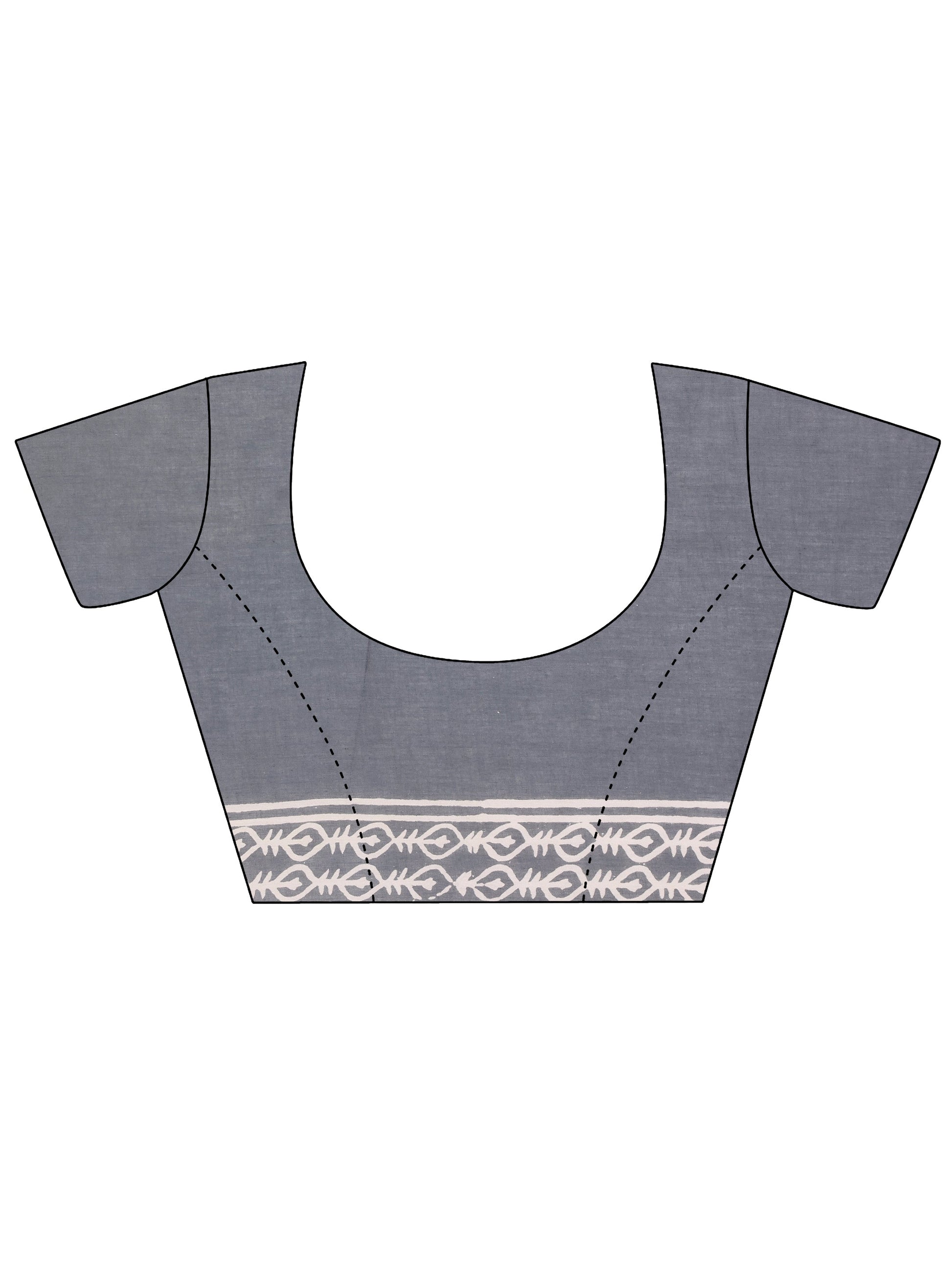 Grey Printed Cotton Saree With Unstitched Blouse