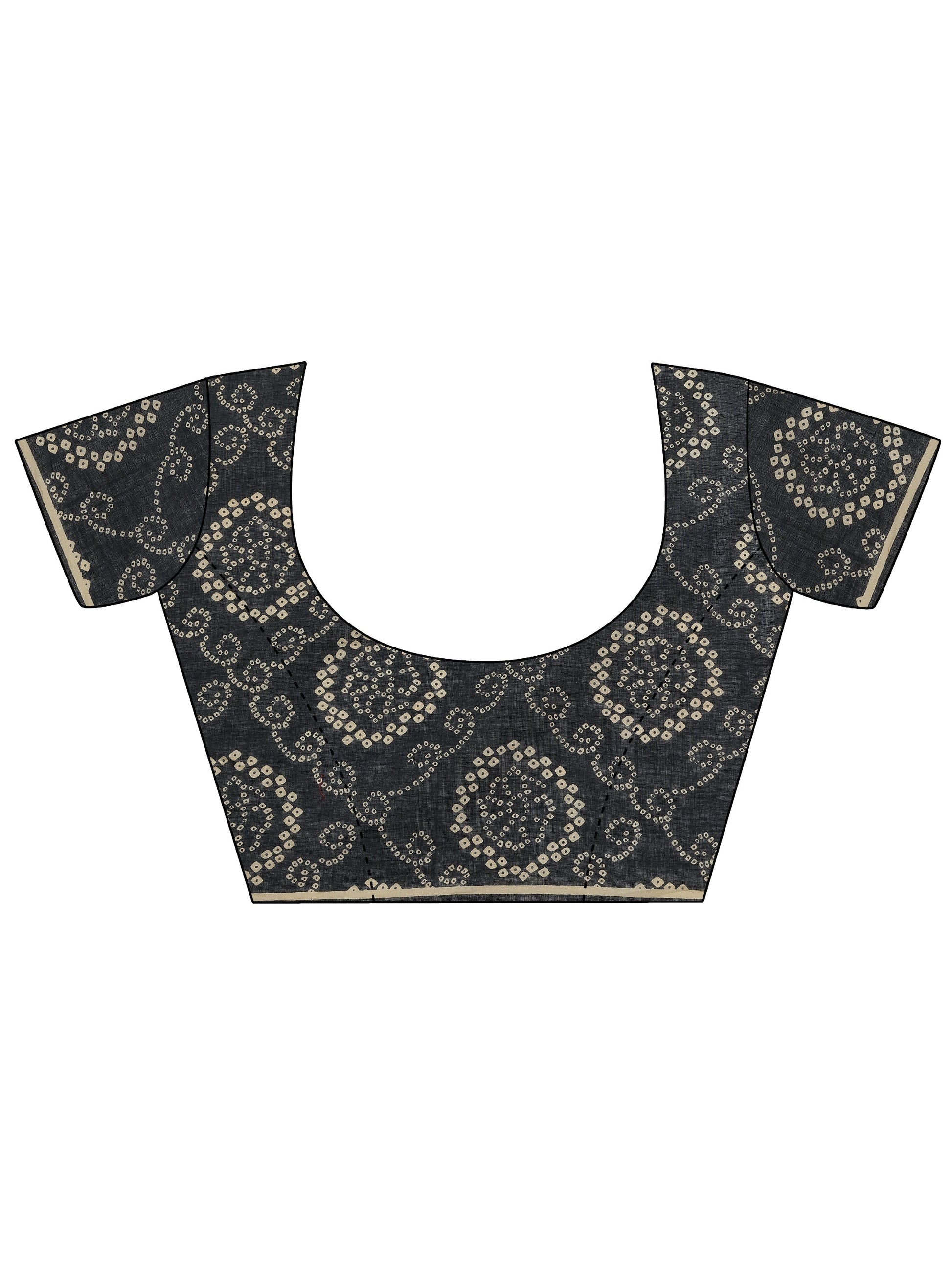 Grey Printed Cotton Saree With Unstitched Blouse Piece