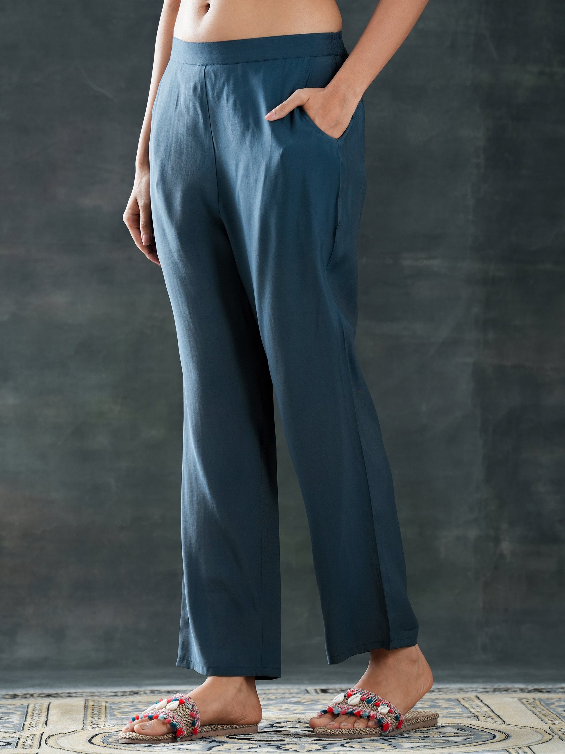 Our 3-piece Navy Blue Silk blend Straight-fit Kurta Set features a Round Neckline, Regular Sleeves, and statement Yoke. Complemented with Straight Pants with a Partially Elasticated waistband and 2 pockets, and an Embroidered dupatta. Adorned with Floral Printed accents, this style is perfect for Casual wear.