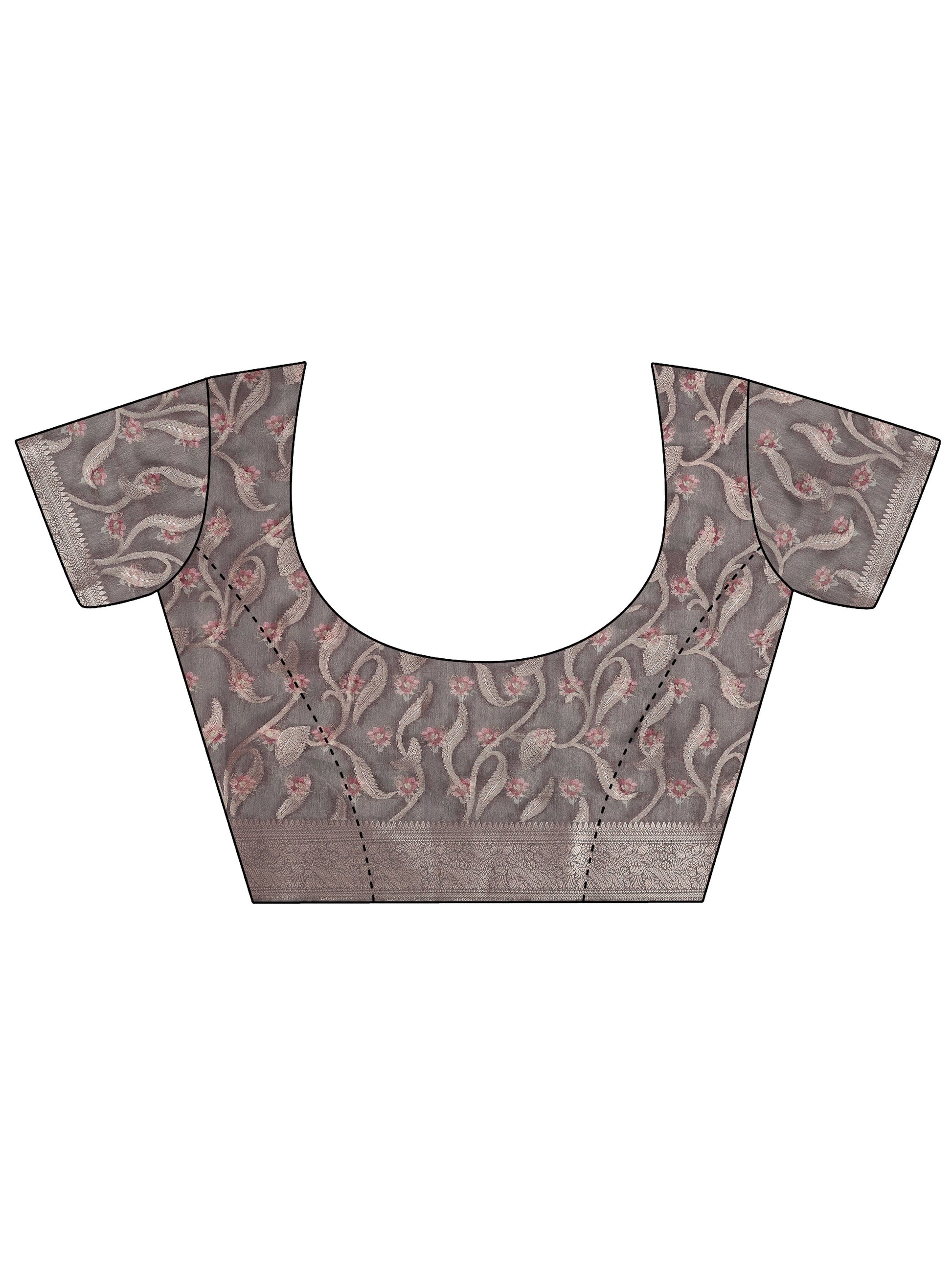 Grey Printed Silk Blend Saree With Unstitched Blouse Piece