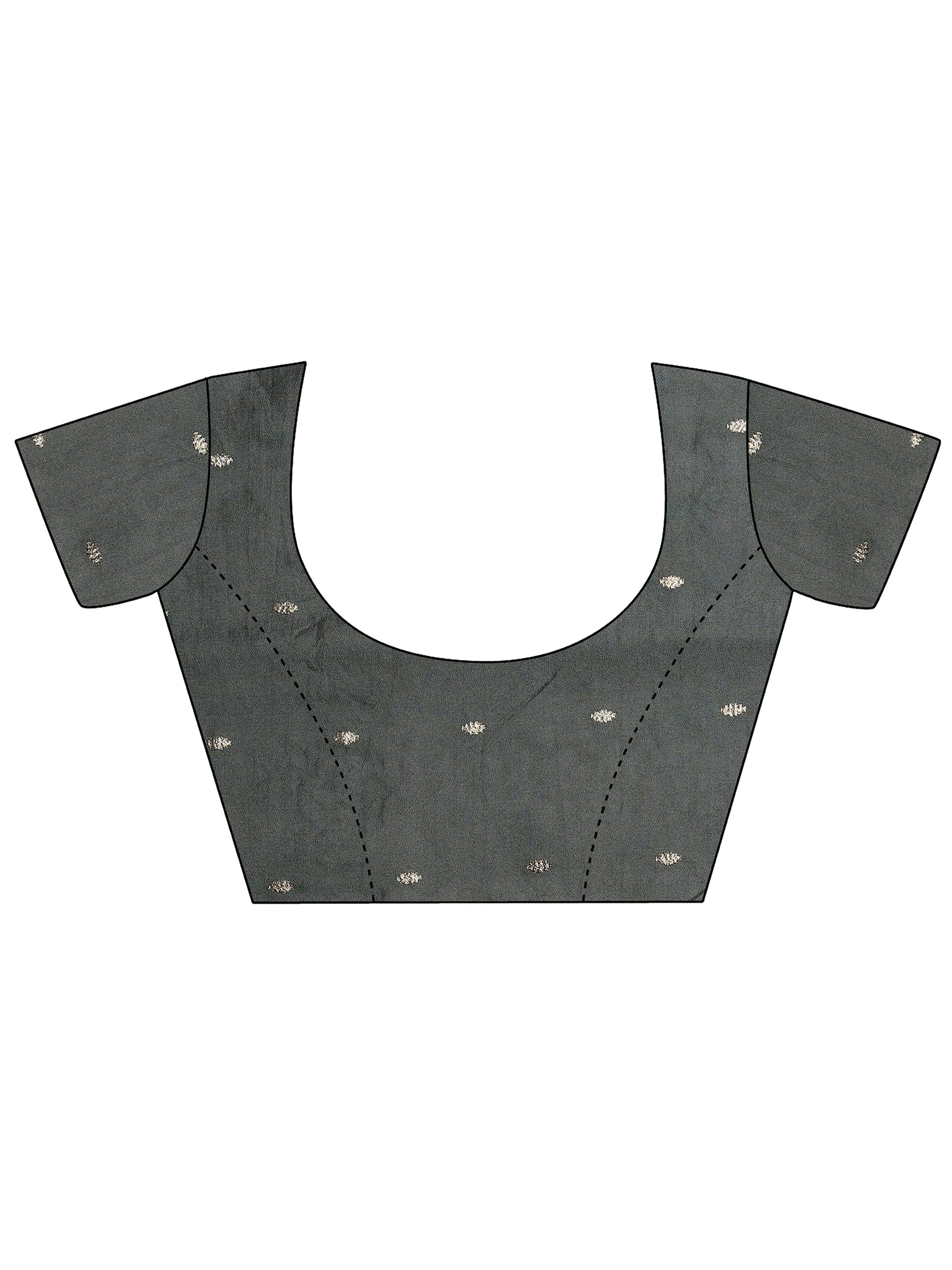 Grey Printed Silk Blend Sarees With Unstitched Blouse Piece