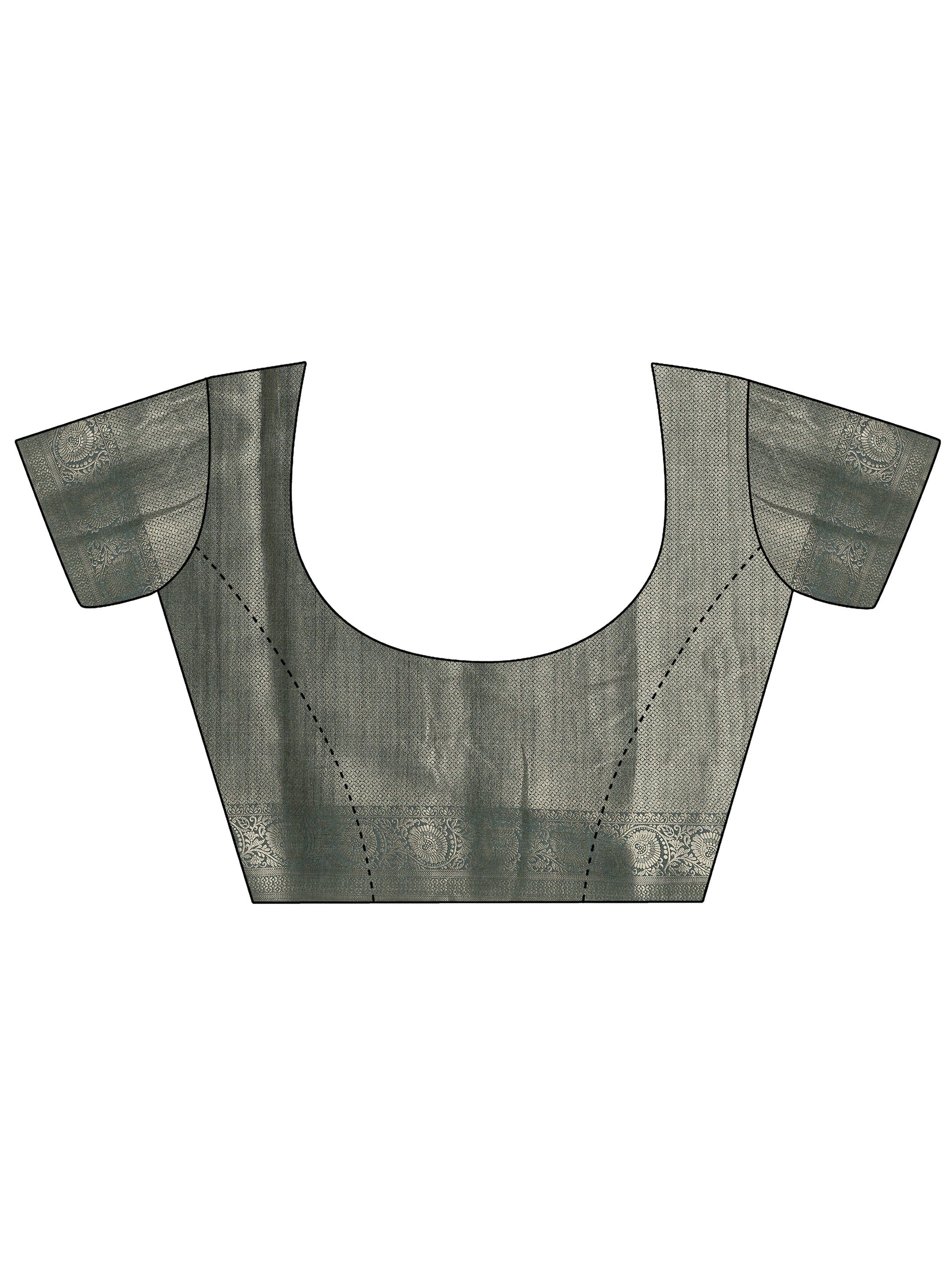 Grey Printed Silk Blend Sarees With Unstitched Blouse Piece