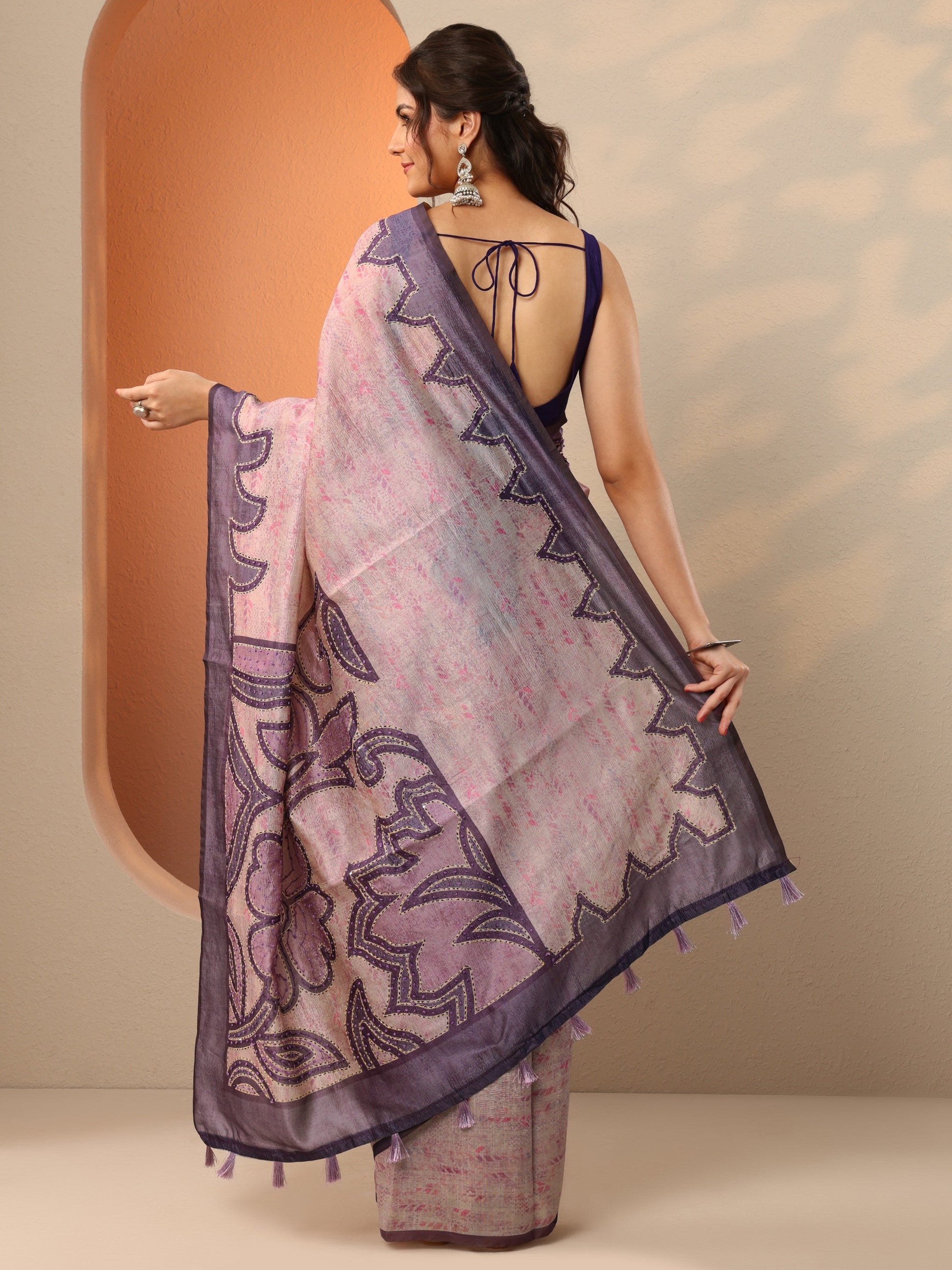 Our Purple Printed Silk Blend Saree Features Captivating Top Print. Complemented With An Unstitched Blouse Piece. This Charming Saree Is Perfect For Casual