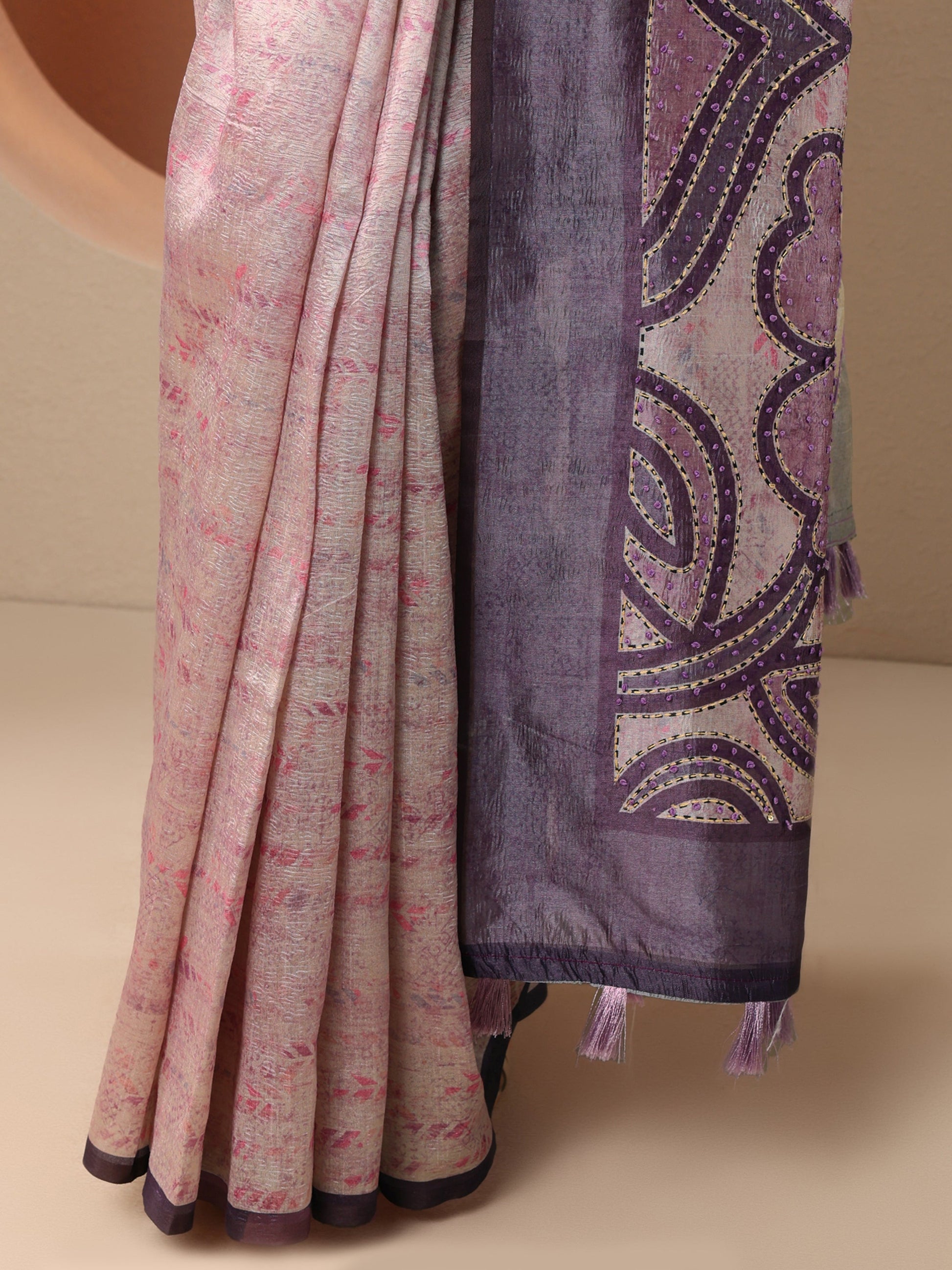 Lavender Embellished Silk Blend Saree With Unstitched Blouse Piece