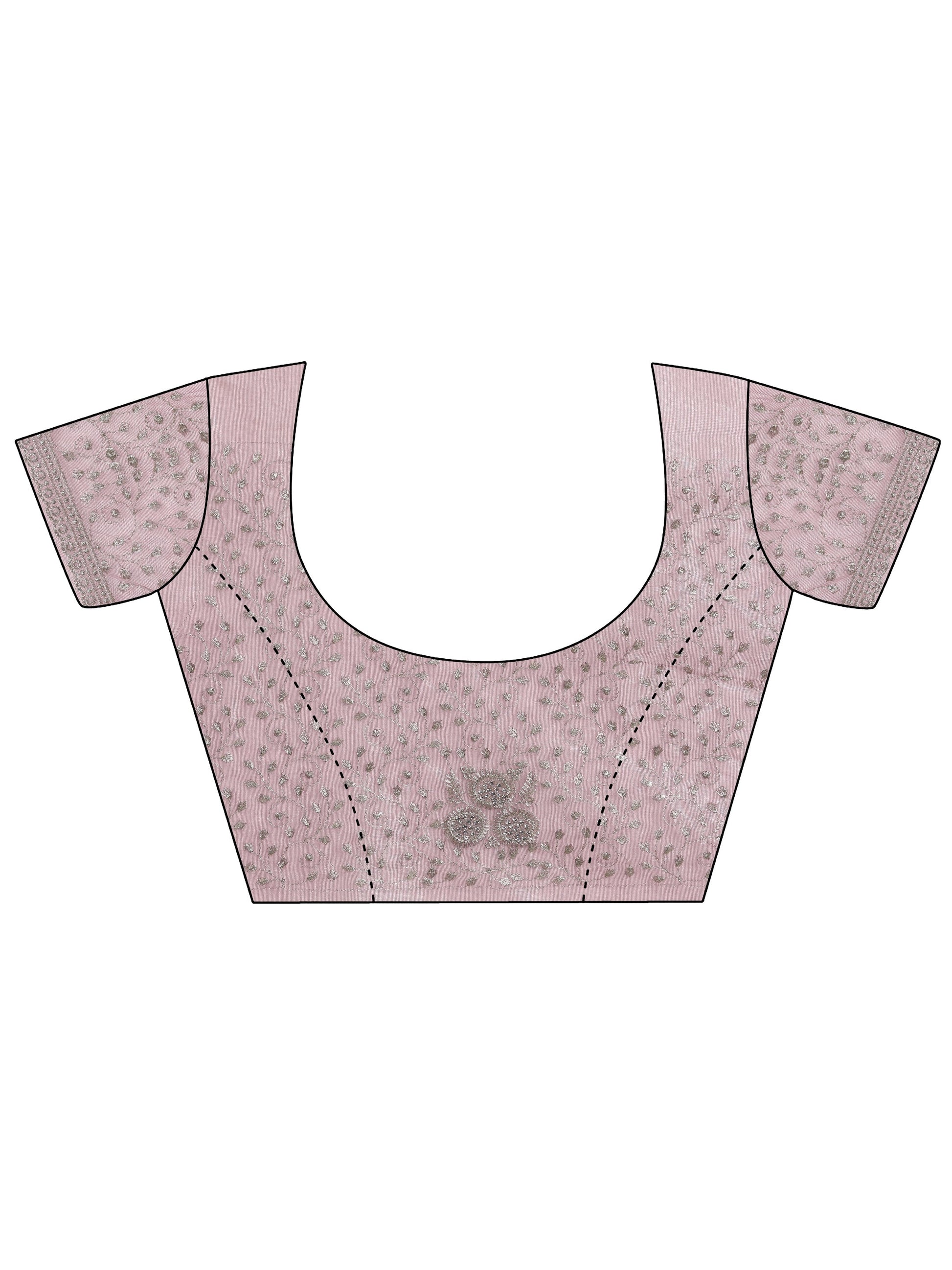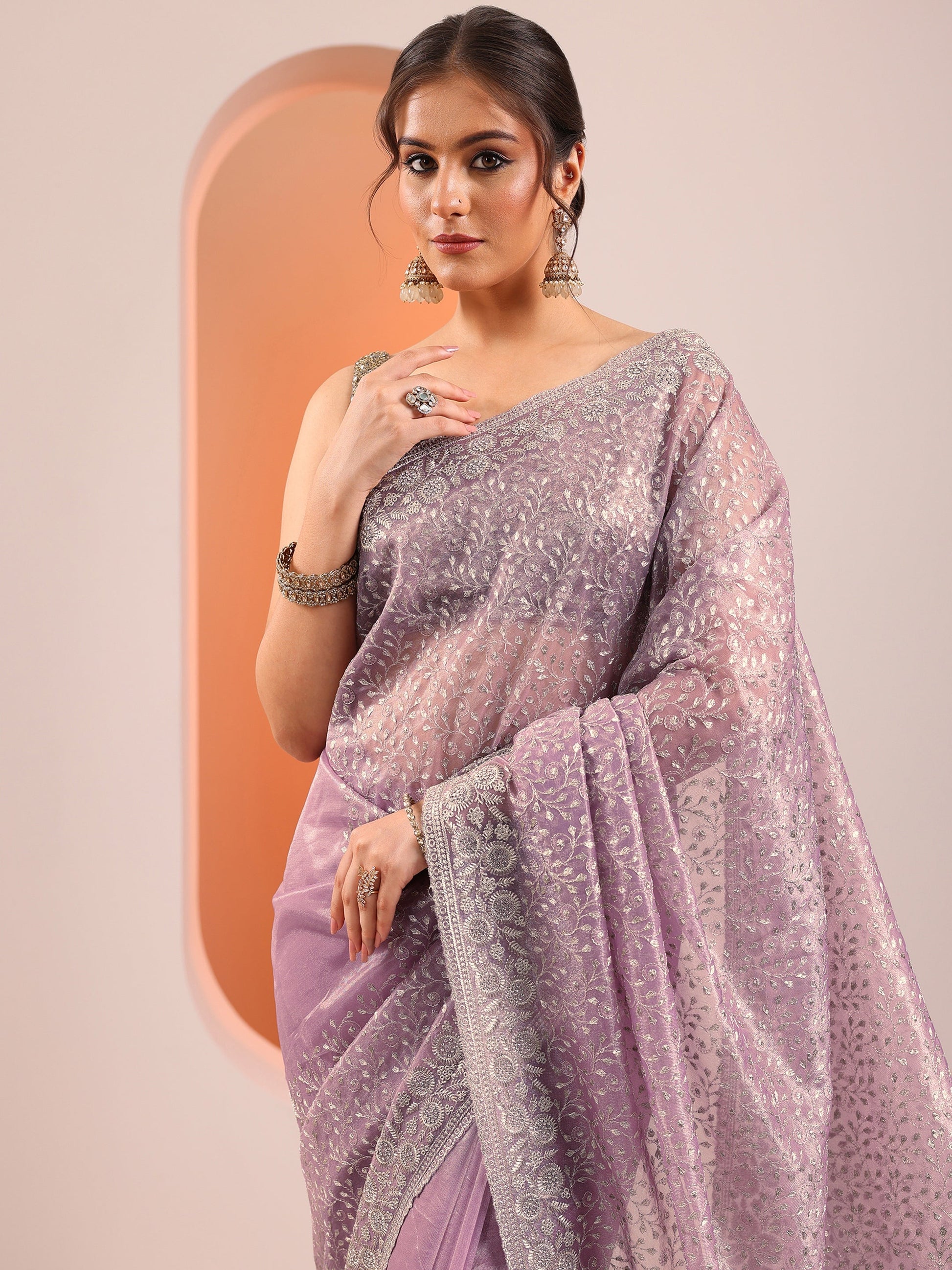 Lavender Embroidered Nylon Saree With Unstitched Blouse Piece