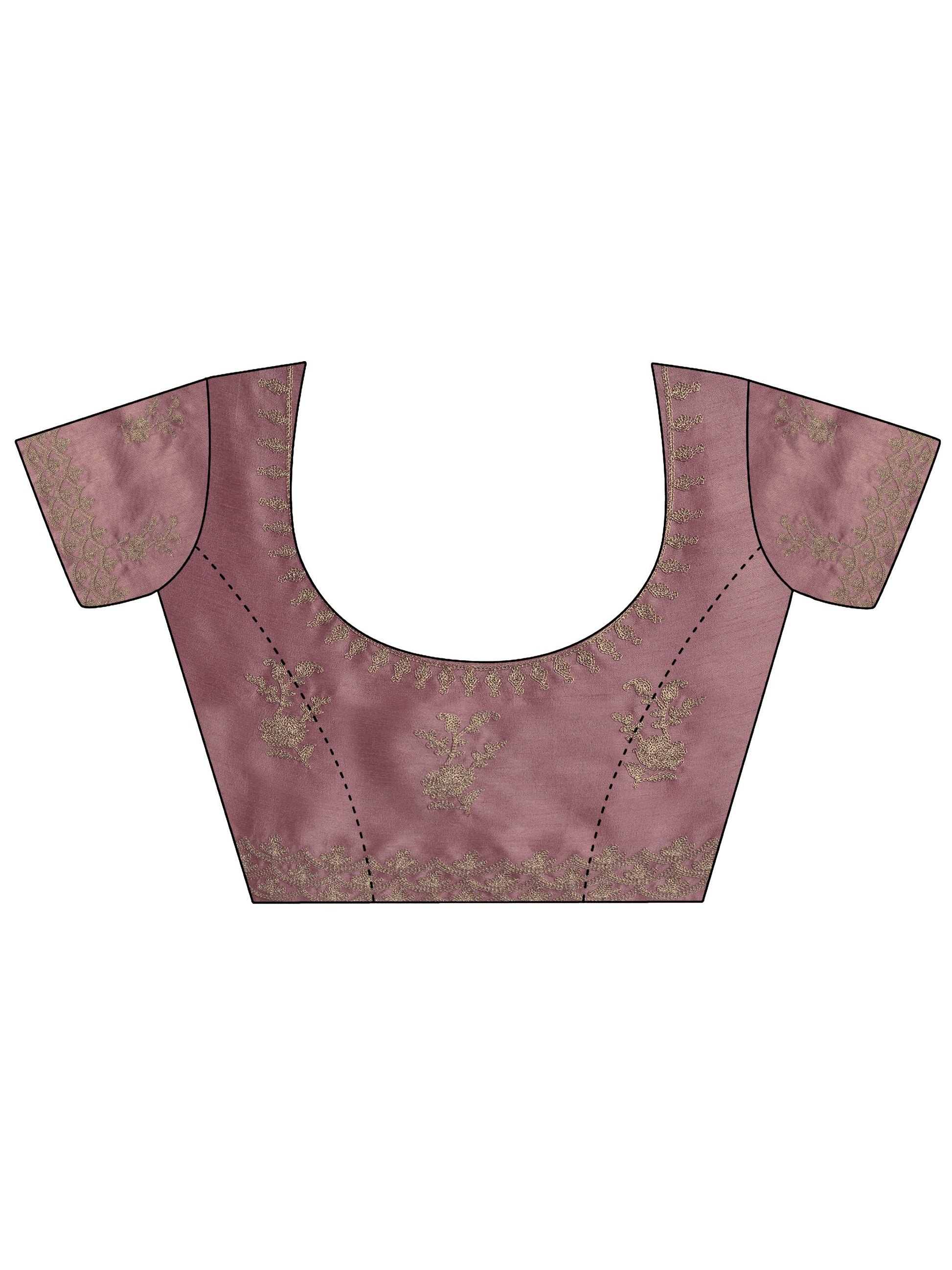 Lavender Embroidered Silk Blend Saree With Unstitched Blouse Piece
