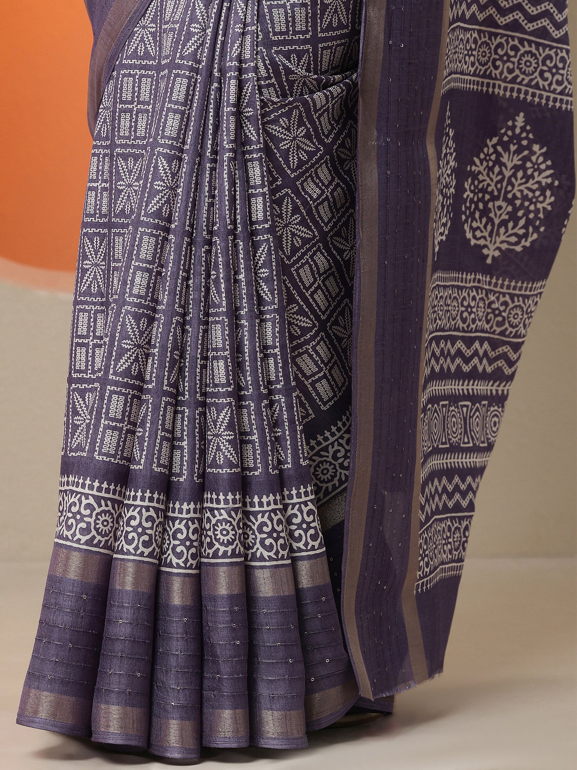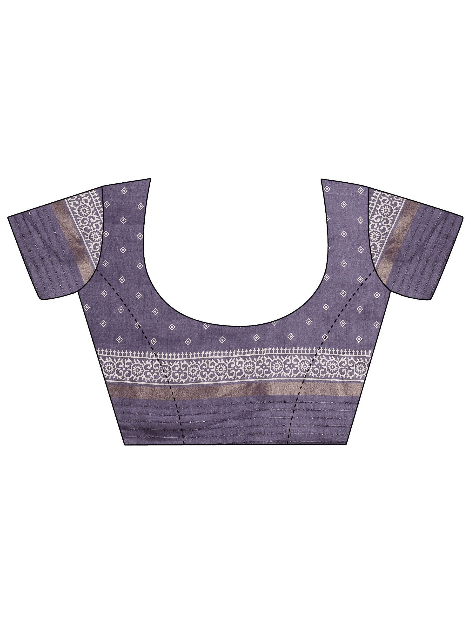 Lavender Printed Silk Blend Saree With Unstitched Blouse Piece