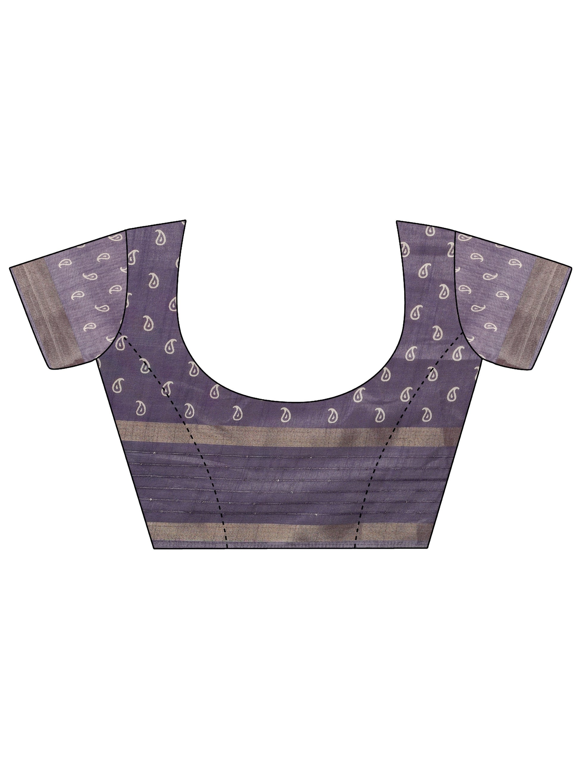 Lavender Printed Silk Blend Saree With Unstitched Blouse Piece