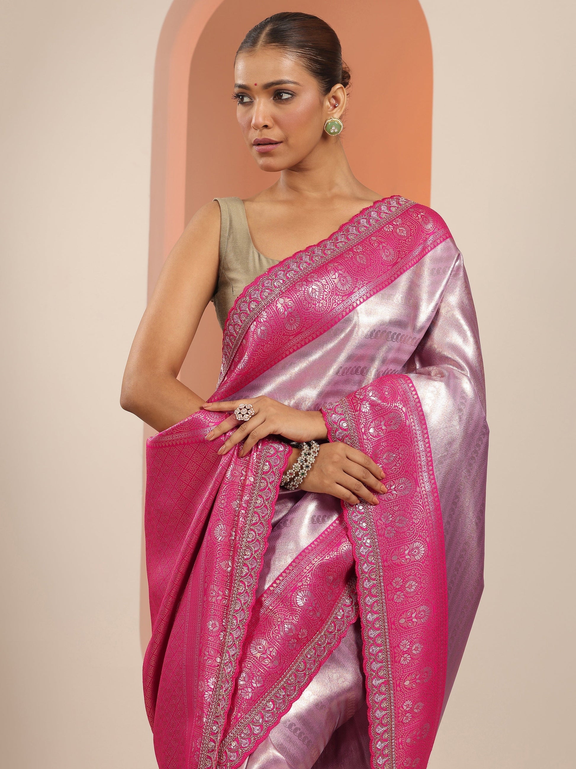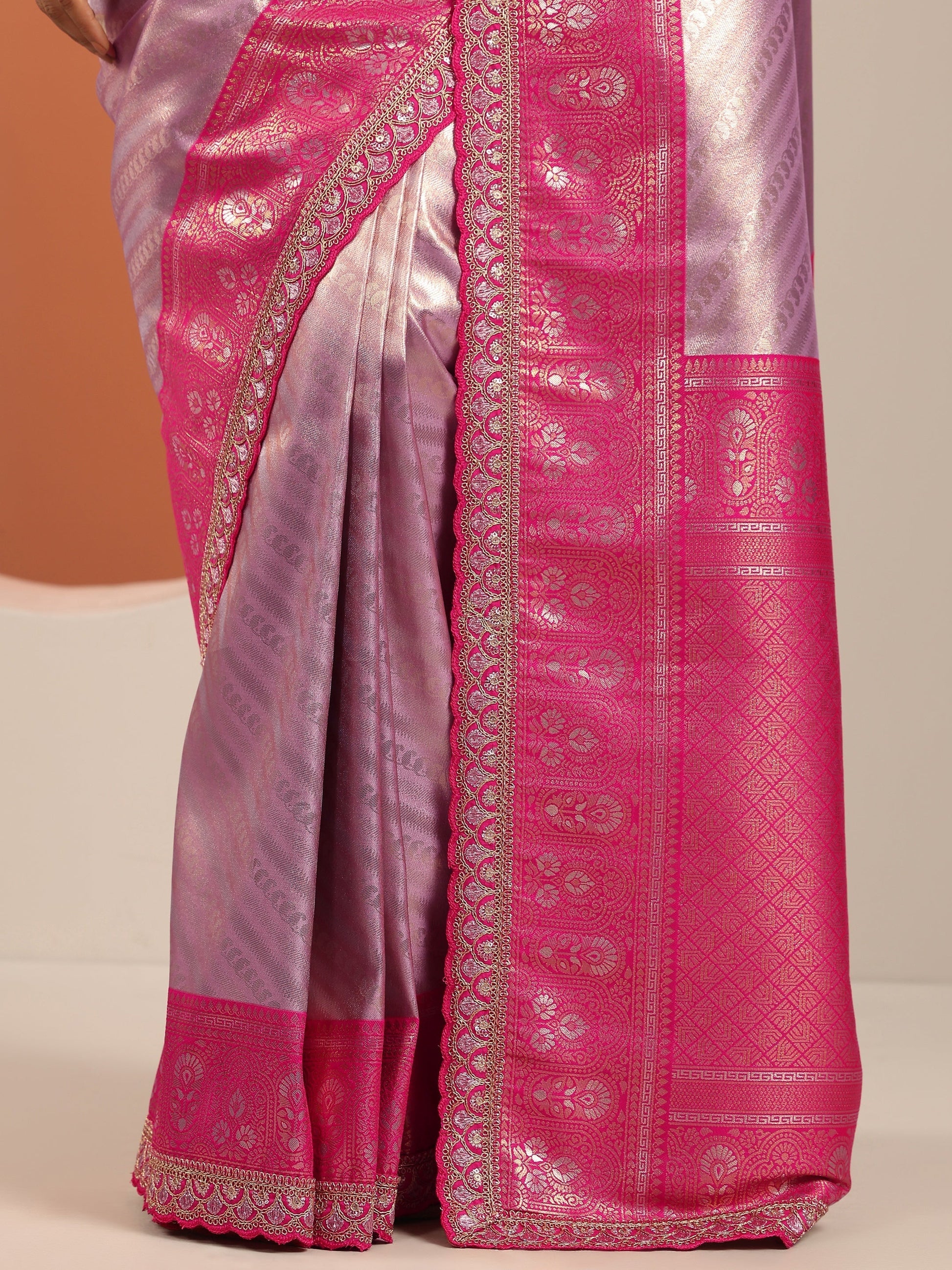 Lavender Silk Blend Saree With Unstitched Blouse Piece