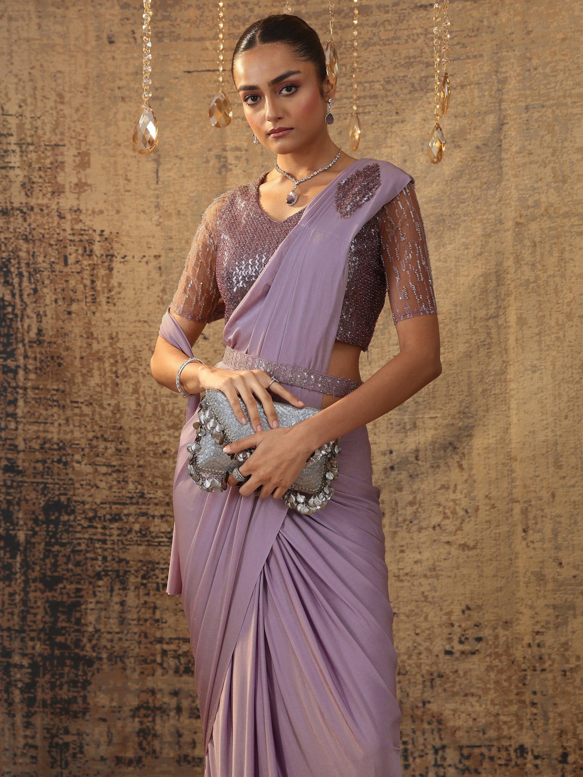 Libas Art Lavender Solid Nylon Ready to Wear Saree