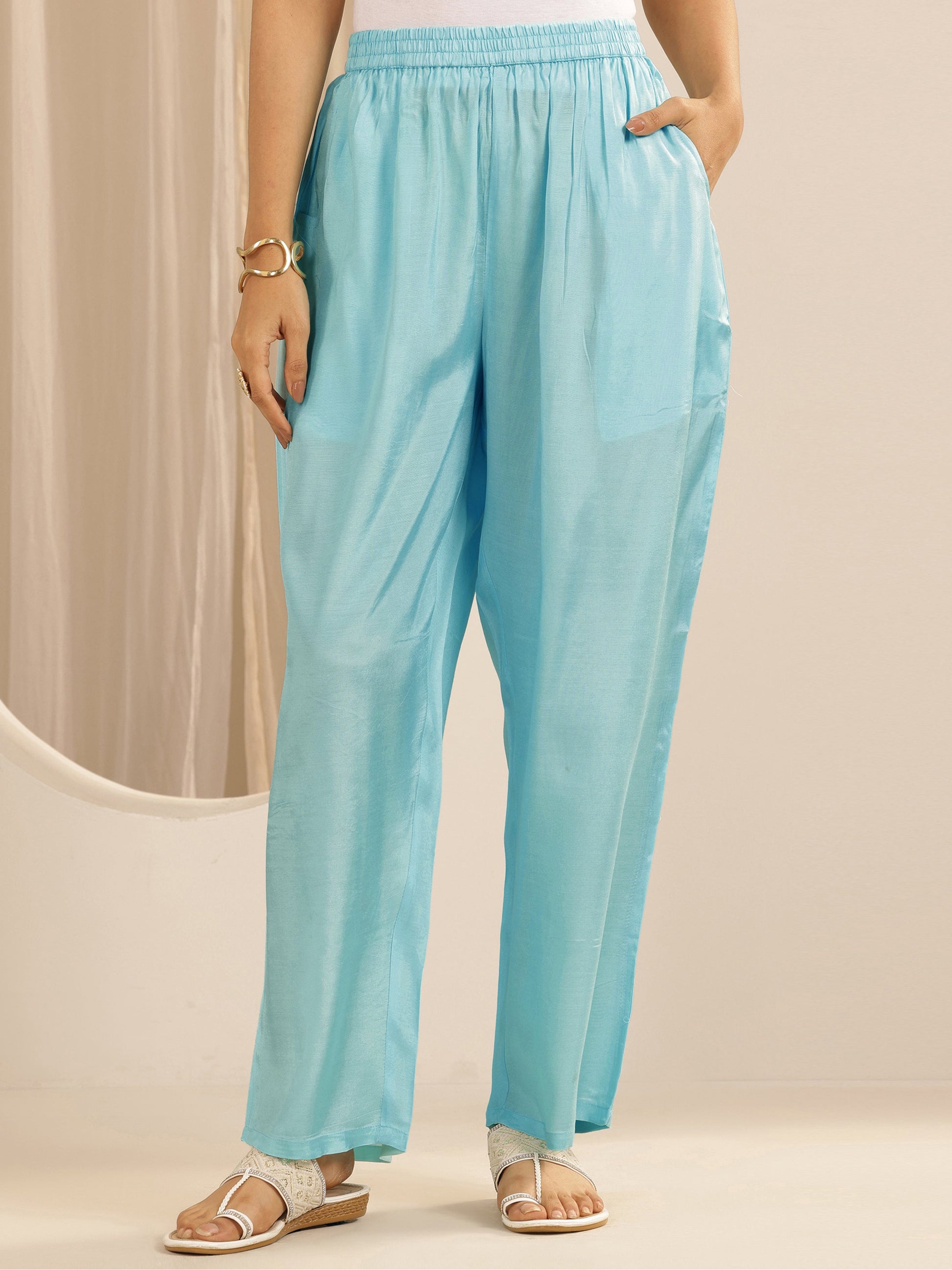 Our 3-piece Turquoise Blue Muslin Straight-Fit Kurta Set features a Keyhole neckline, Bell Sleeves, and statement yoke. Complemented with Straight Pants with a Partially Elasticated waistband and Roomy Pockets, and a Printed dupatta. Adorned with Floral Embroidered accents, this style is perfect for Festive wear.