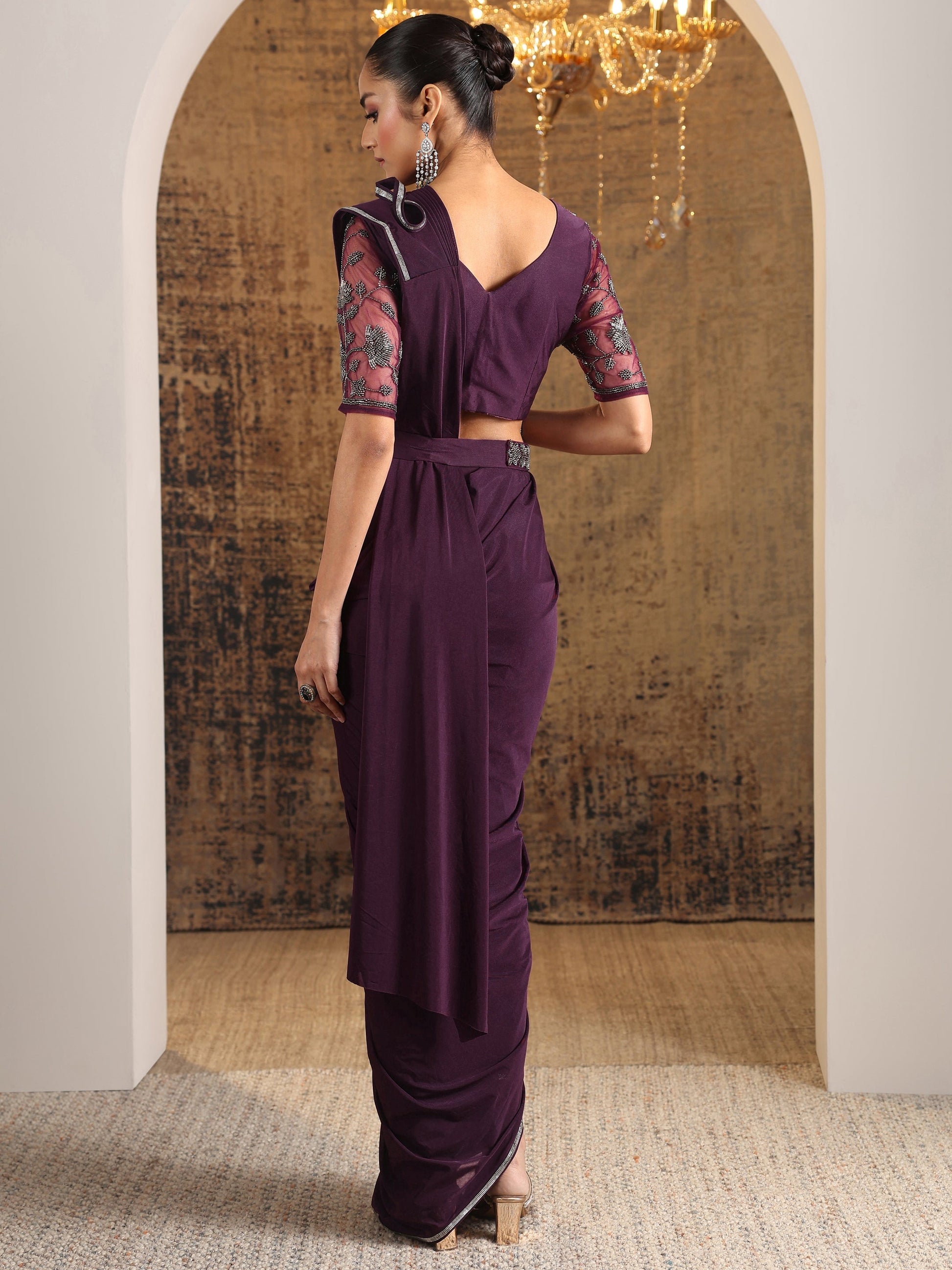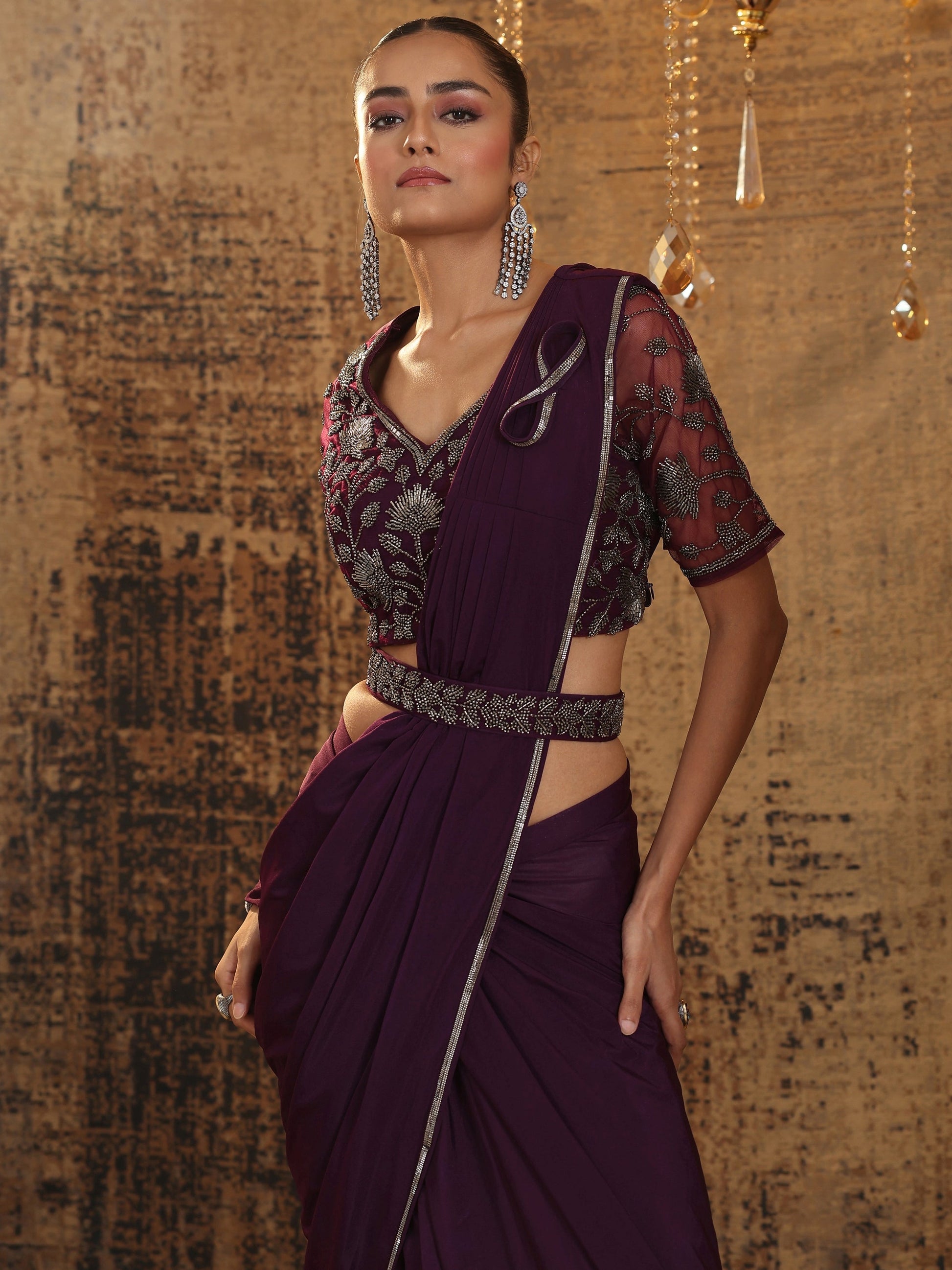 Libas Art Burgundy Solid Nylon Ready to Wear Saree