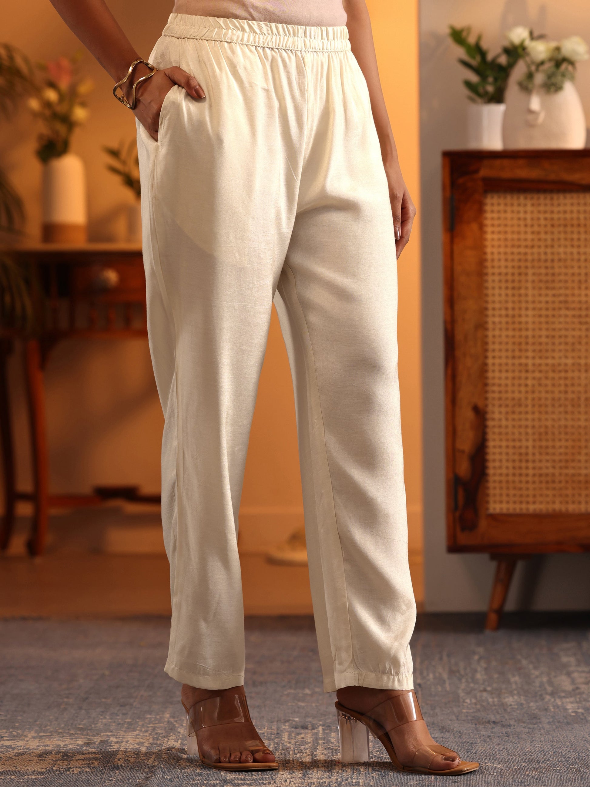 Our 3-piece Off White Muslin Straight-fit Kurta Set features a Round Neckline, Regular Sleeves, and statement Yoke. Complemented with Straight Pants with a Partially Elasticated waistband and 2 pockets, and a Printed dupatta. Adorned with Paisley Printed embellishments, this style is perfect for Festive wear.