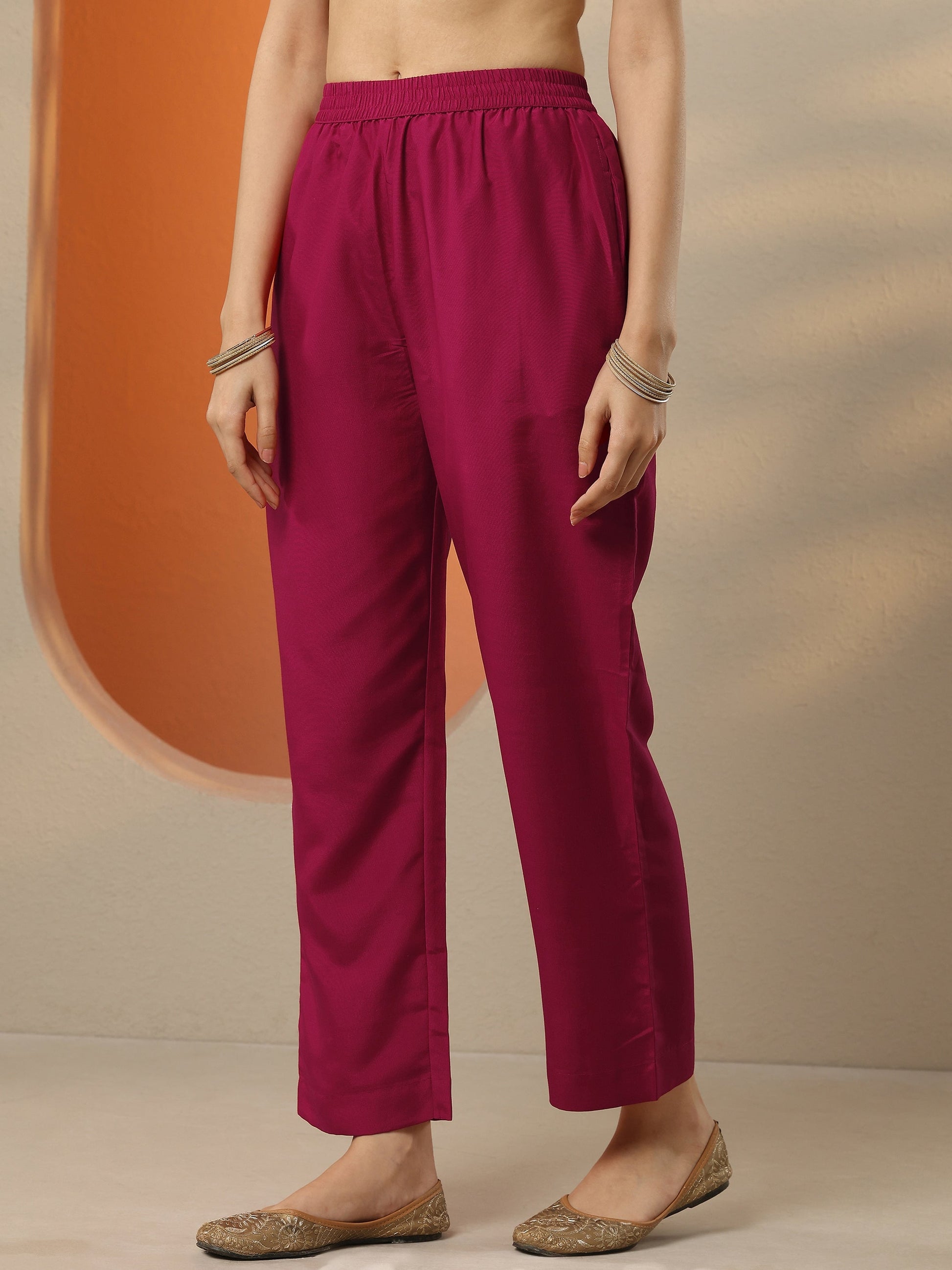 Our 3-piece maroon silk blend Anarkali kurta set features a round neckline, regular sleeves, and a statement yoke. Complemented with lining and straight pants with a partially elasticated waistband and 2 pockets, and an embroidered dupatta. Adorned with Embroidered, this style is perfect for dark festive occasions.